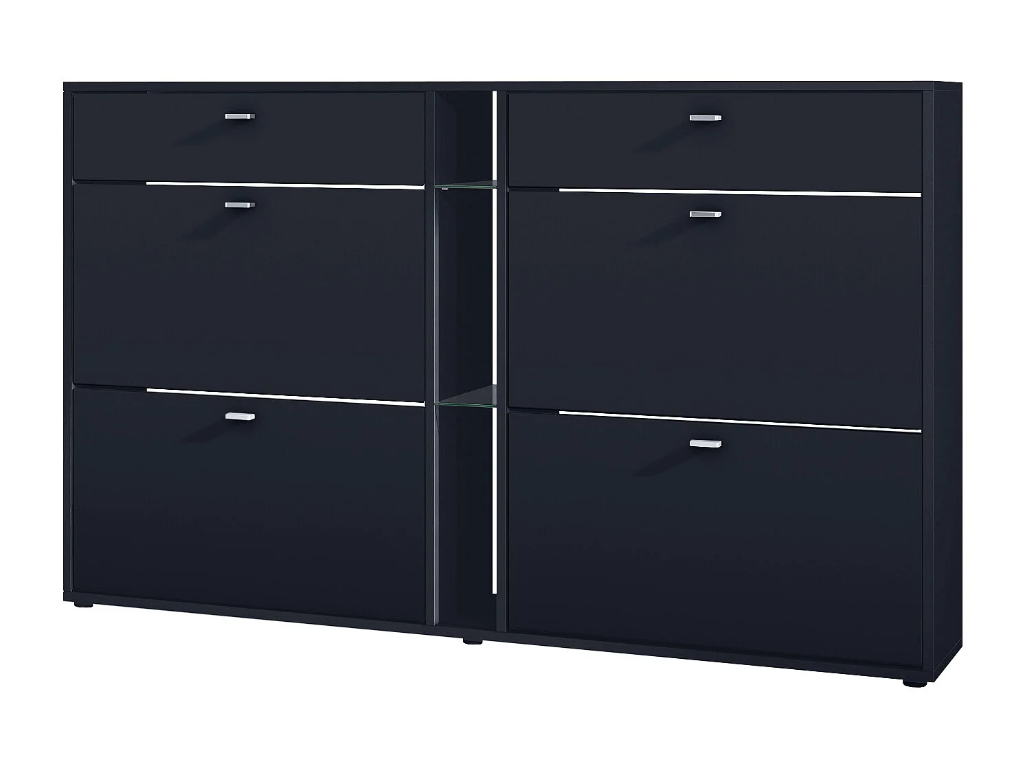 Zapatero con solapas Today 155,5 x 95 x 28 cm, con iluminación LED azul, estructura en Negro mate, frentes en negro mate