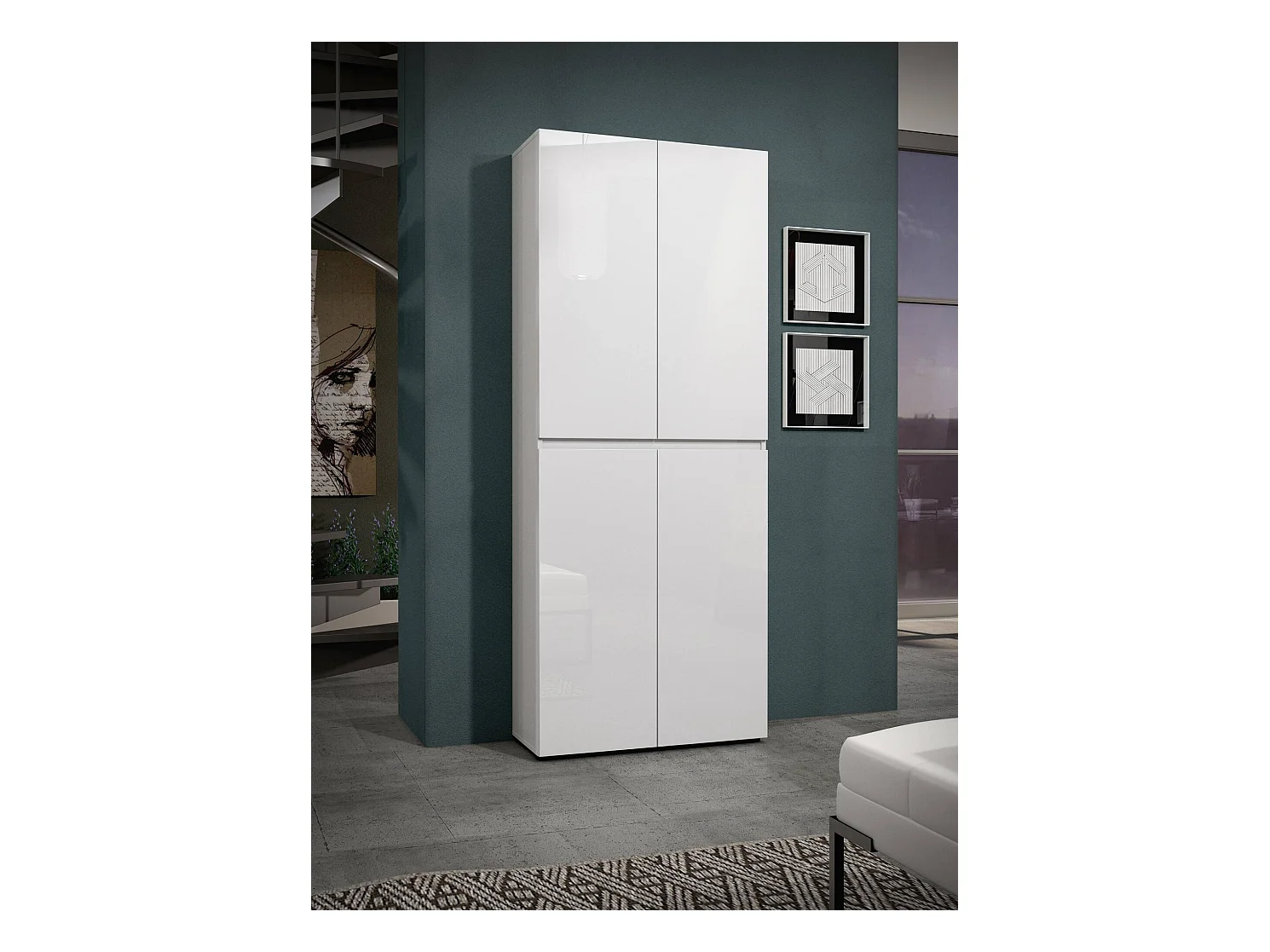 Zapatero Ddjimsit, Zapatero, Armario de entrada multiusos, Zapatero, Made in Italy, 80x34h200 cm, Blanco brillante