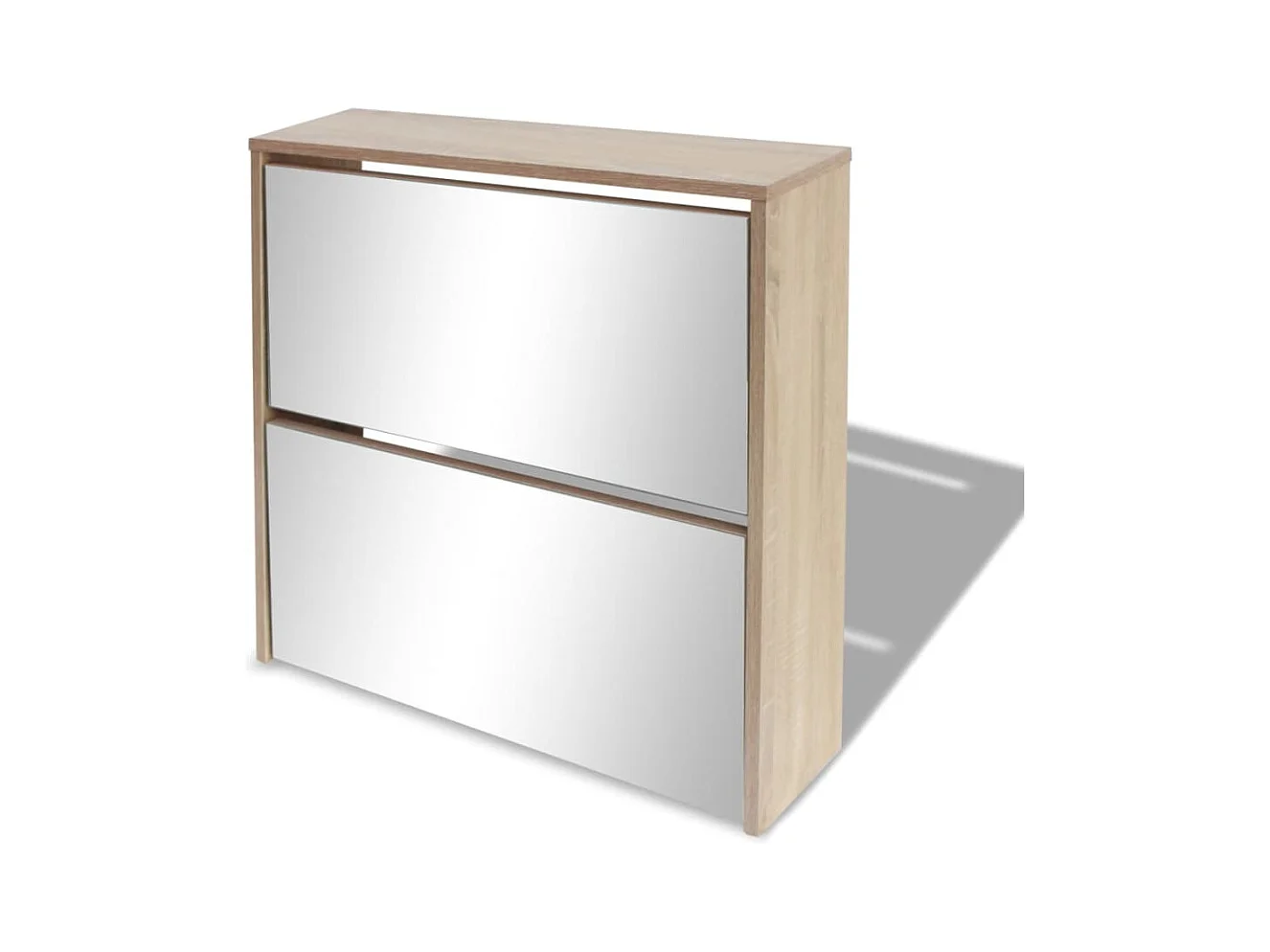 Zapatero de 2 niveles con espejo 63 x 17 x 67 cm Roble marrón 02_0043382