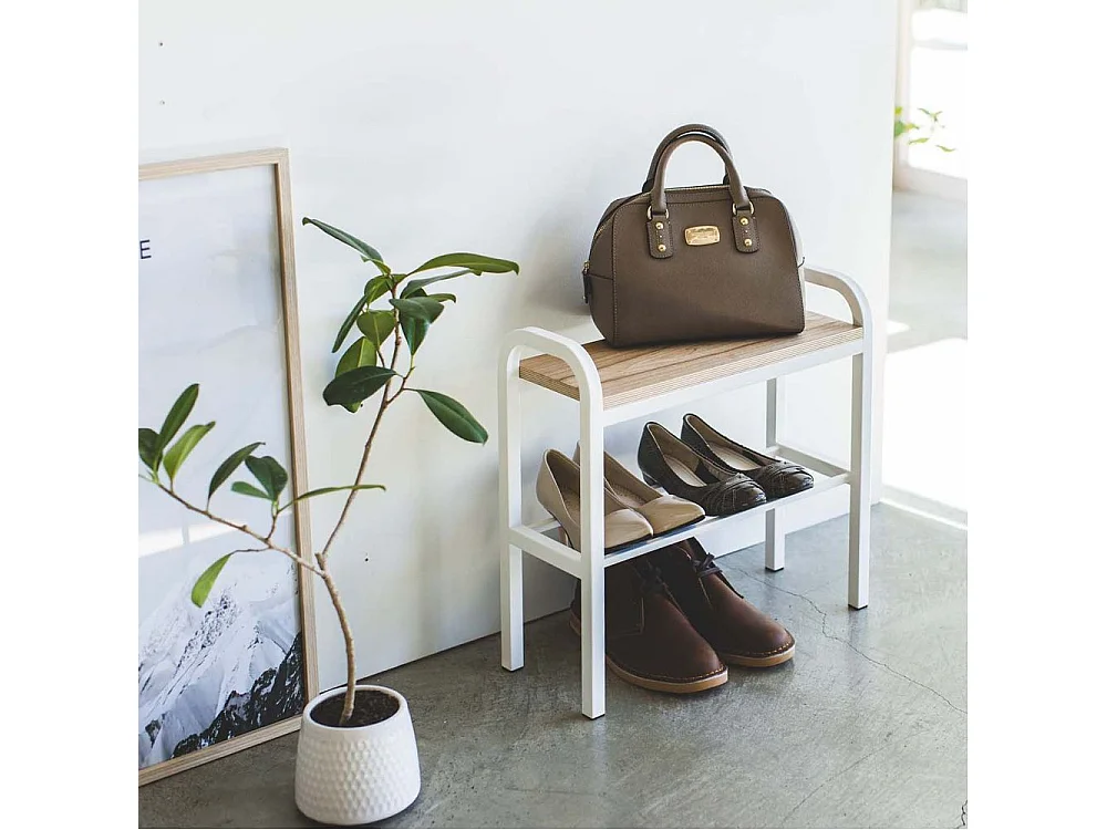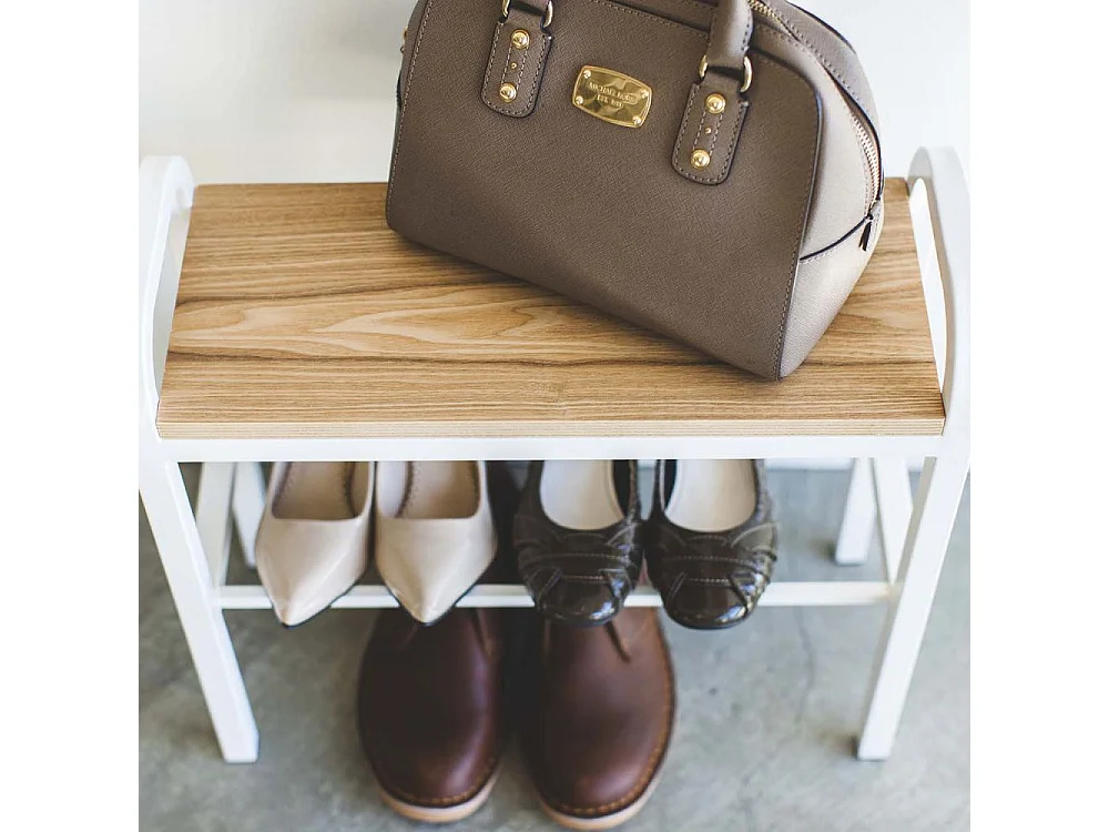 Banco zapatero Lovviken Homcom 2 puertas blanco/natural 45x80x35 cm