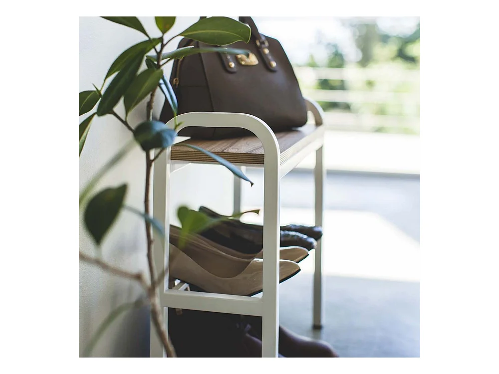 Zapatero - con banco y 2 compartimentos - con tiradores y pies de metal - estilo moderno - Blanco
