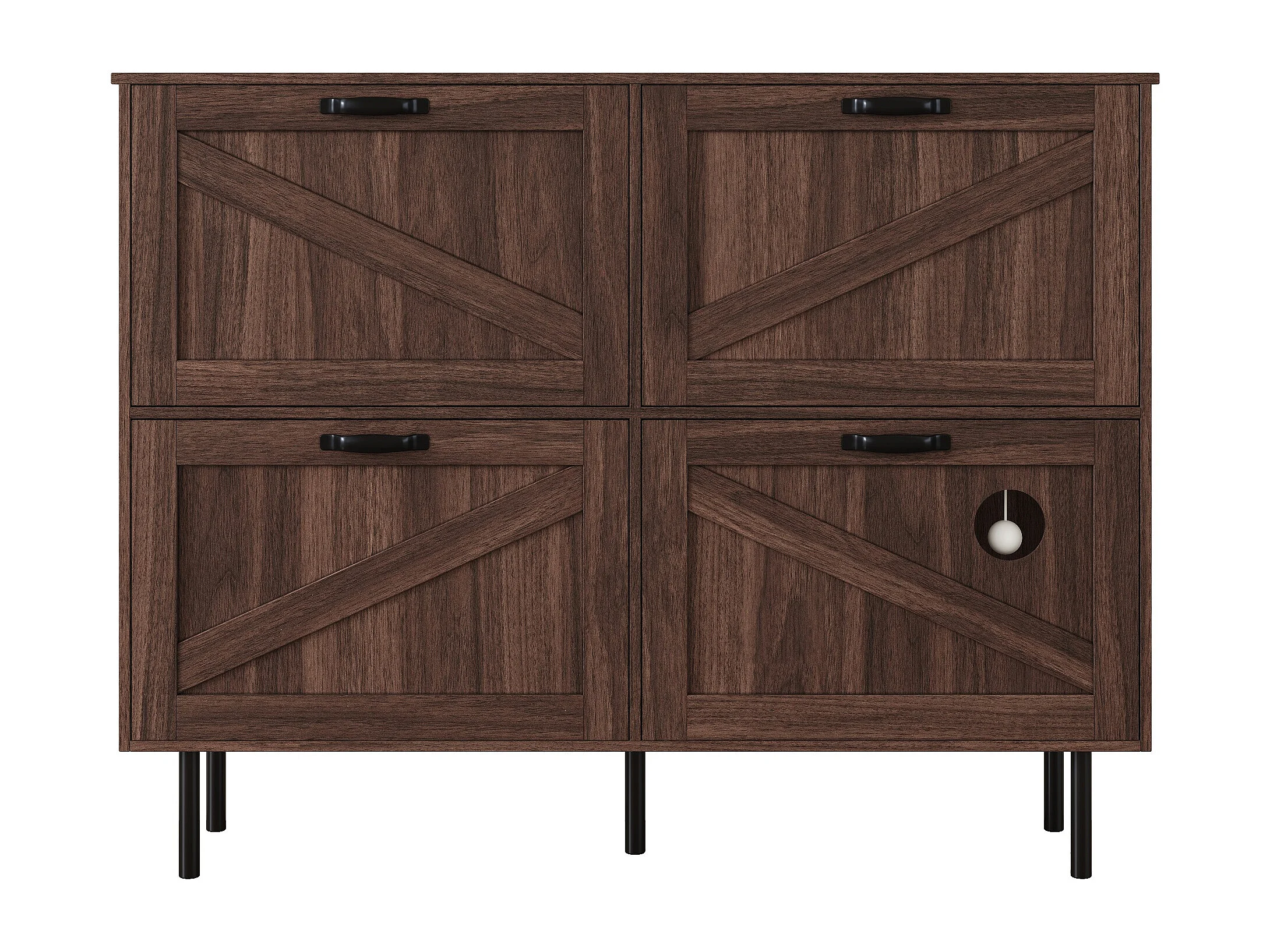 Zapatero en madera oscura con 4 puertas, tiradores y patas negras - ideal para la entrada