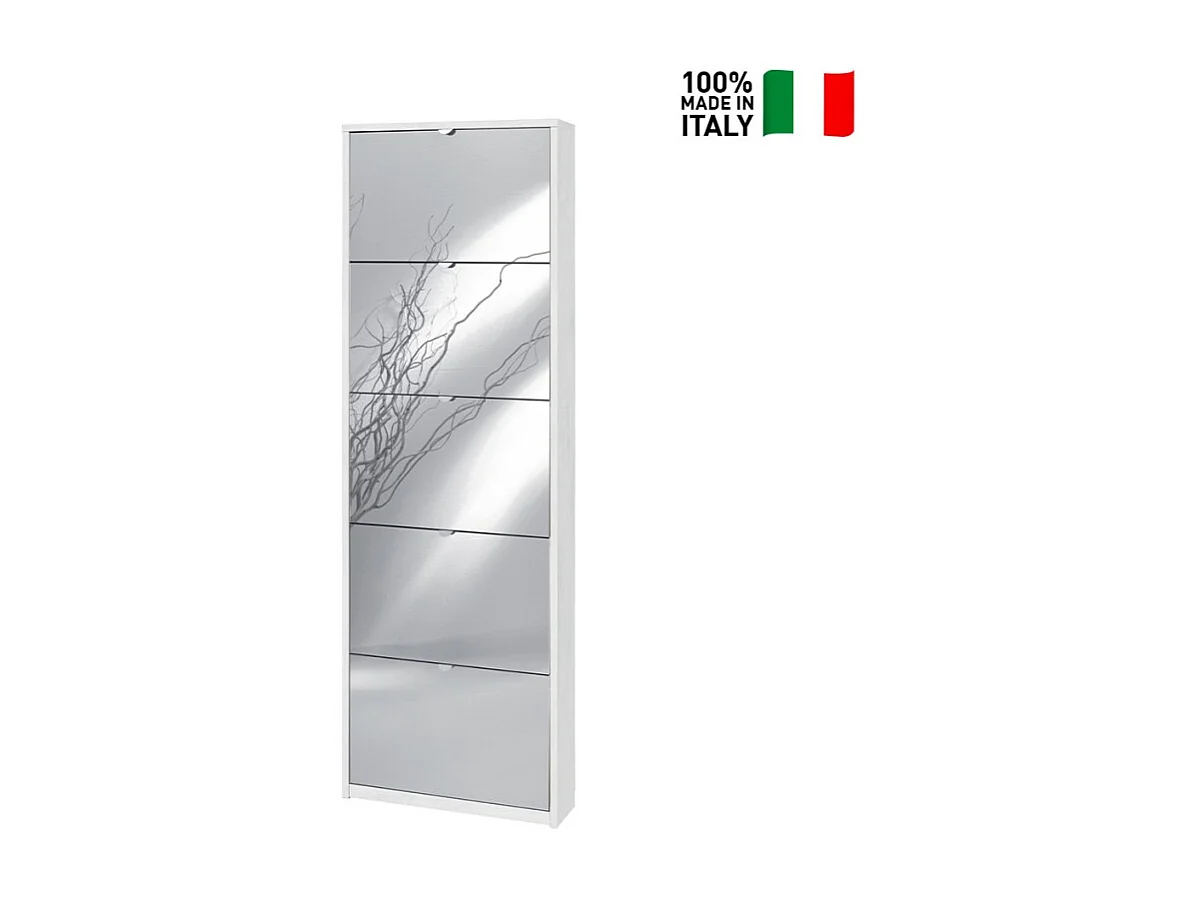 Zapatero de diseño moderno con 5 puertas con espejo 12 pares de zapatos Darcy - Blanco