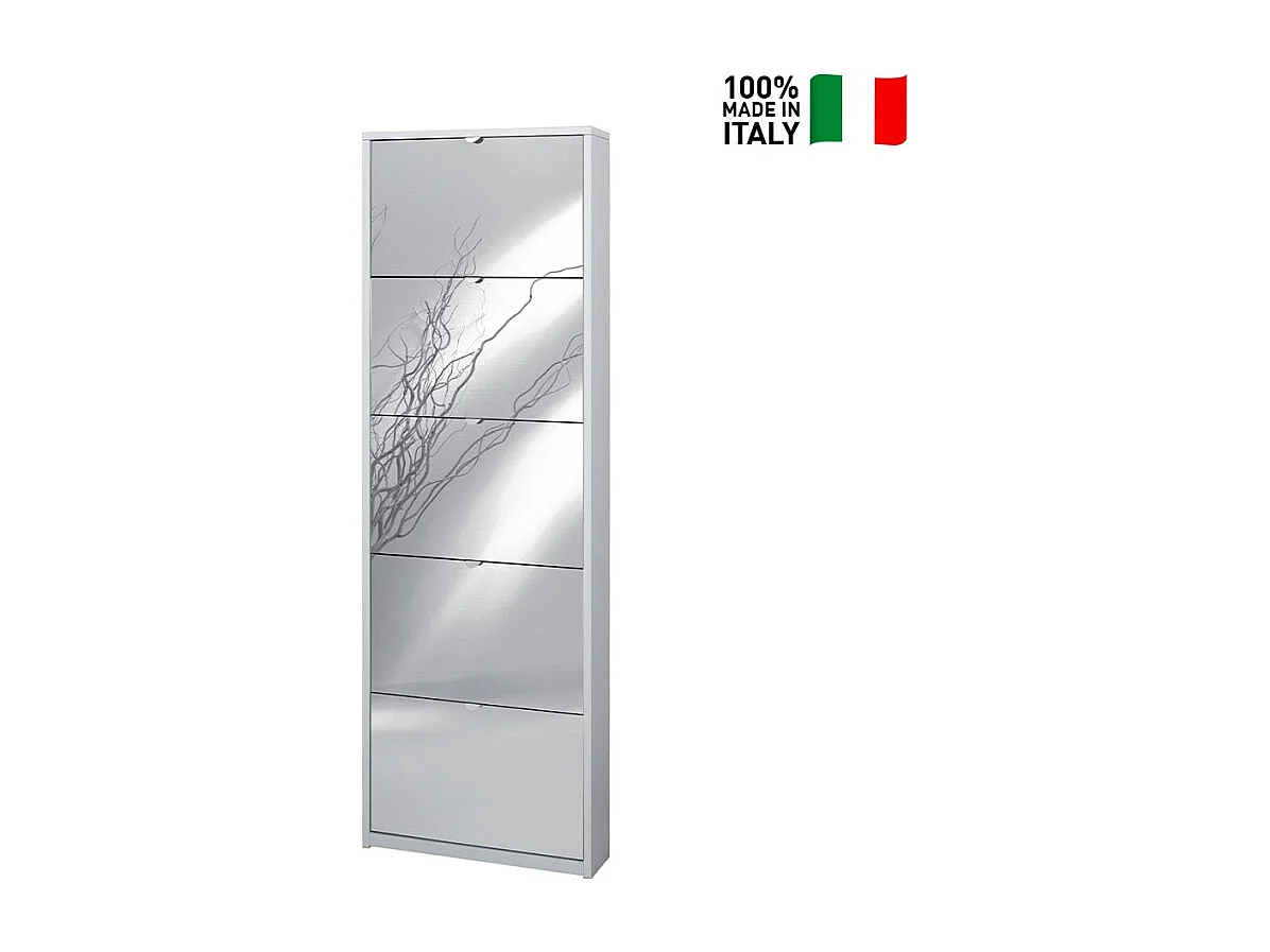Zapatero de diseño moderno con 5 puertas con espejo 12 pares de zapatos Darcy - Blanco Shabby