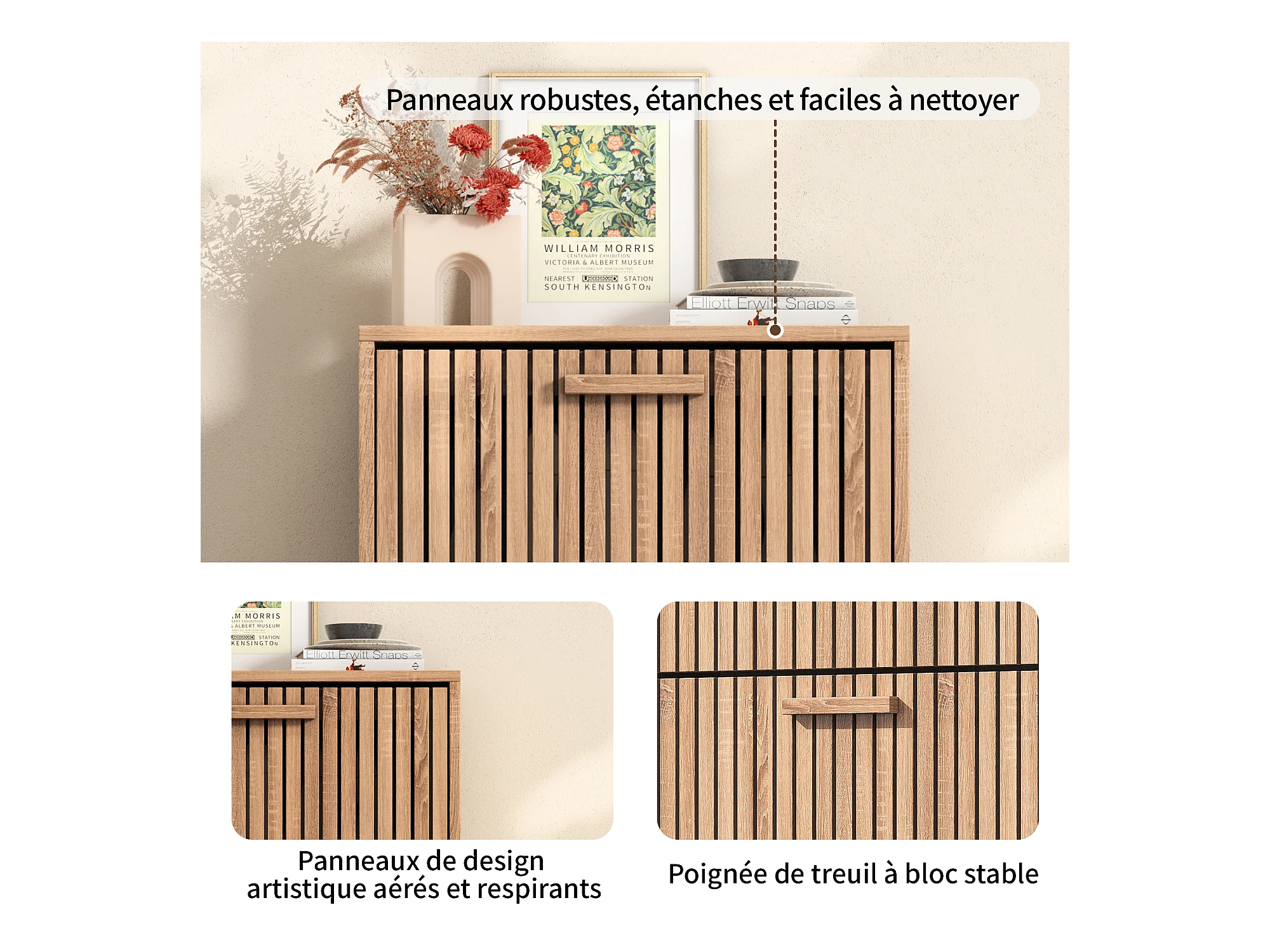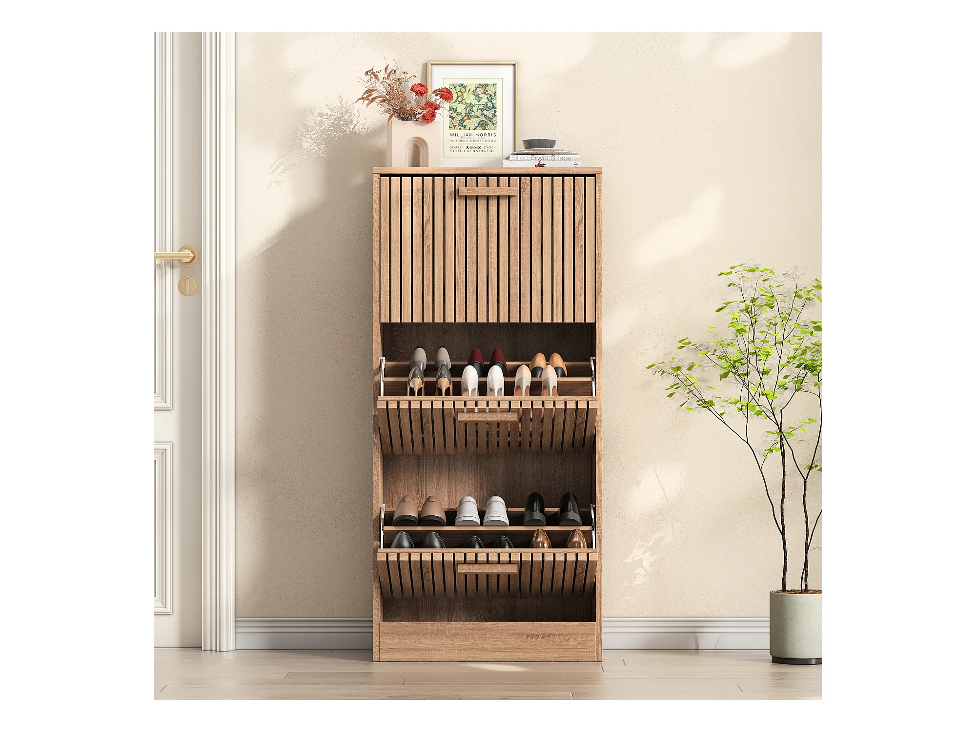 Zapatero de madera de diseño moderno, 3 cajones basculantes, 113 x 60 x 24 cm – Estructura robusta y panel transpirable