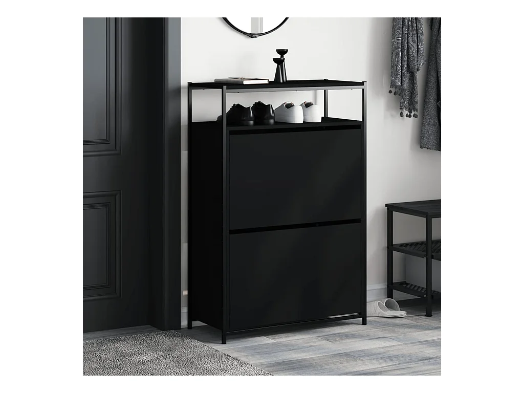 Mueble zapatero con 2 cajones abatibles negro 80x34x116 cm ES362058