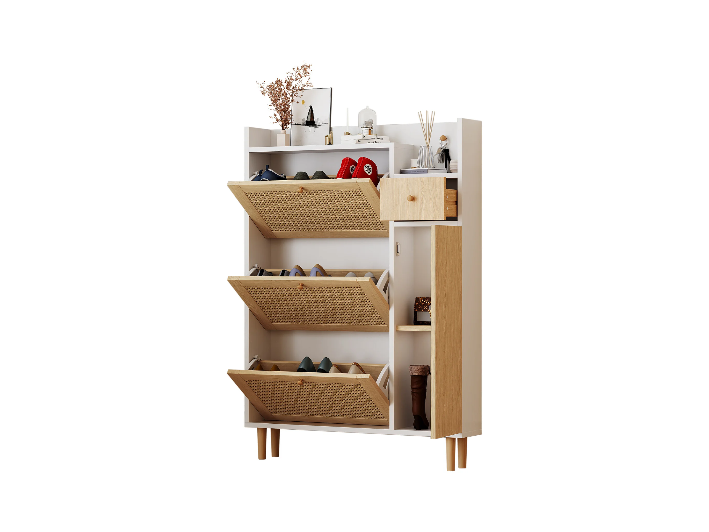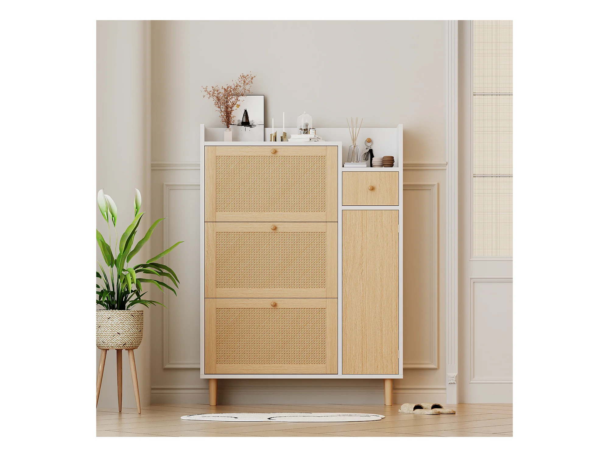 Zapatero de madera de ratán MDF con 3 cajones grandes para entrada natural