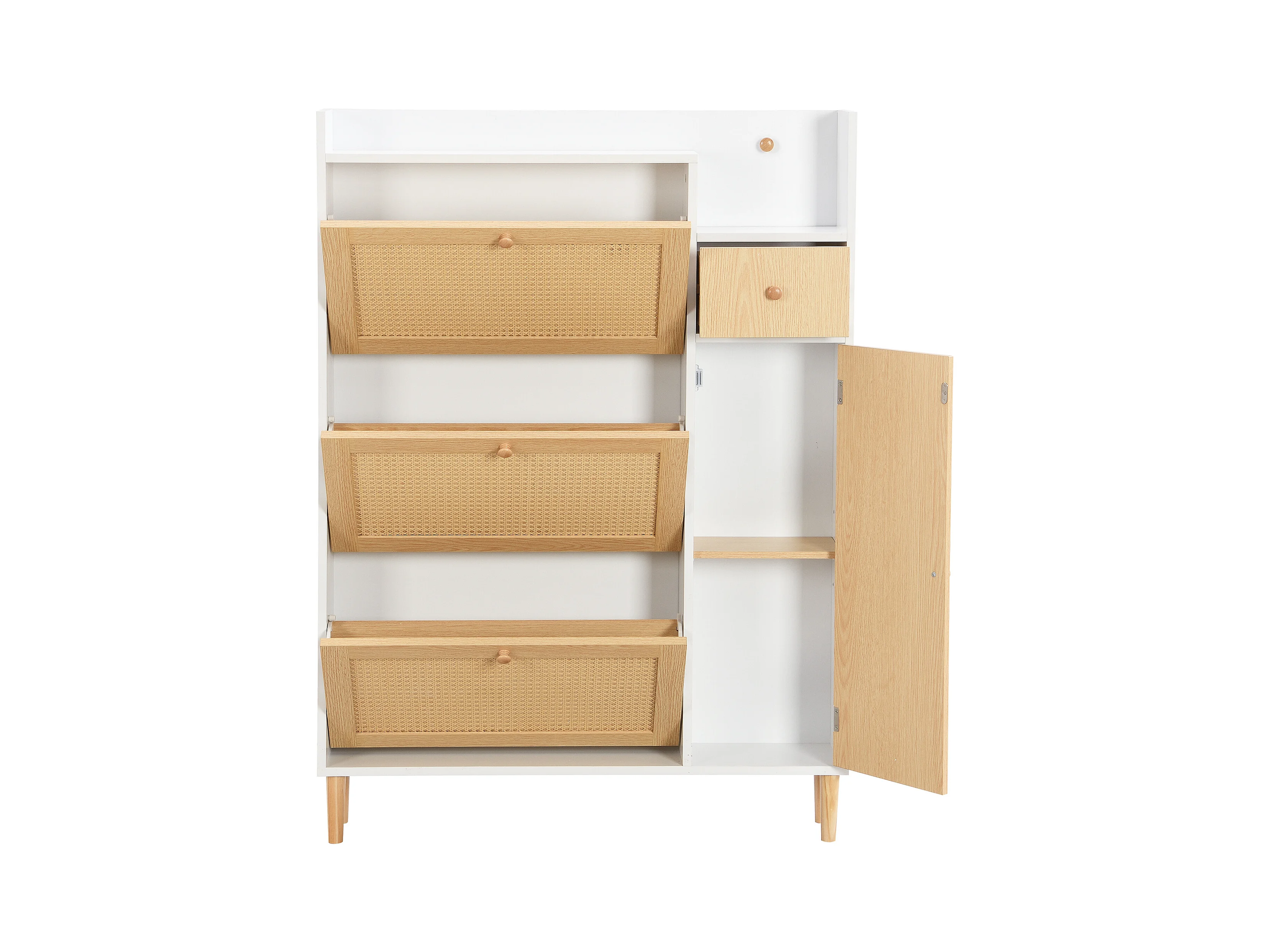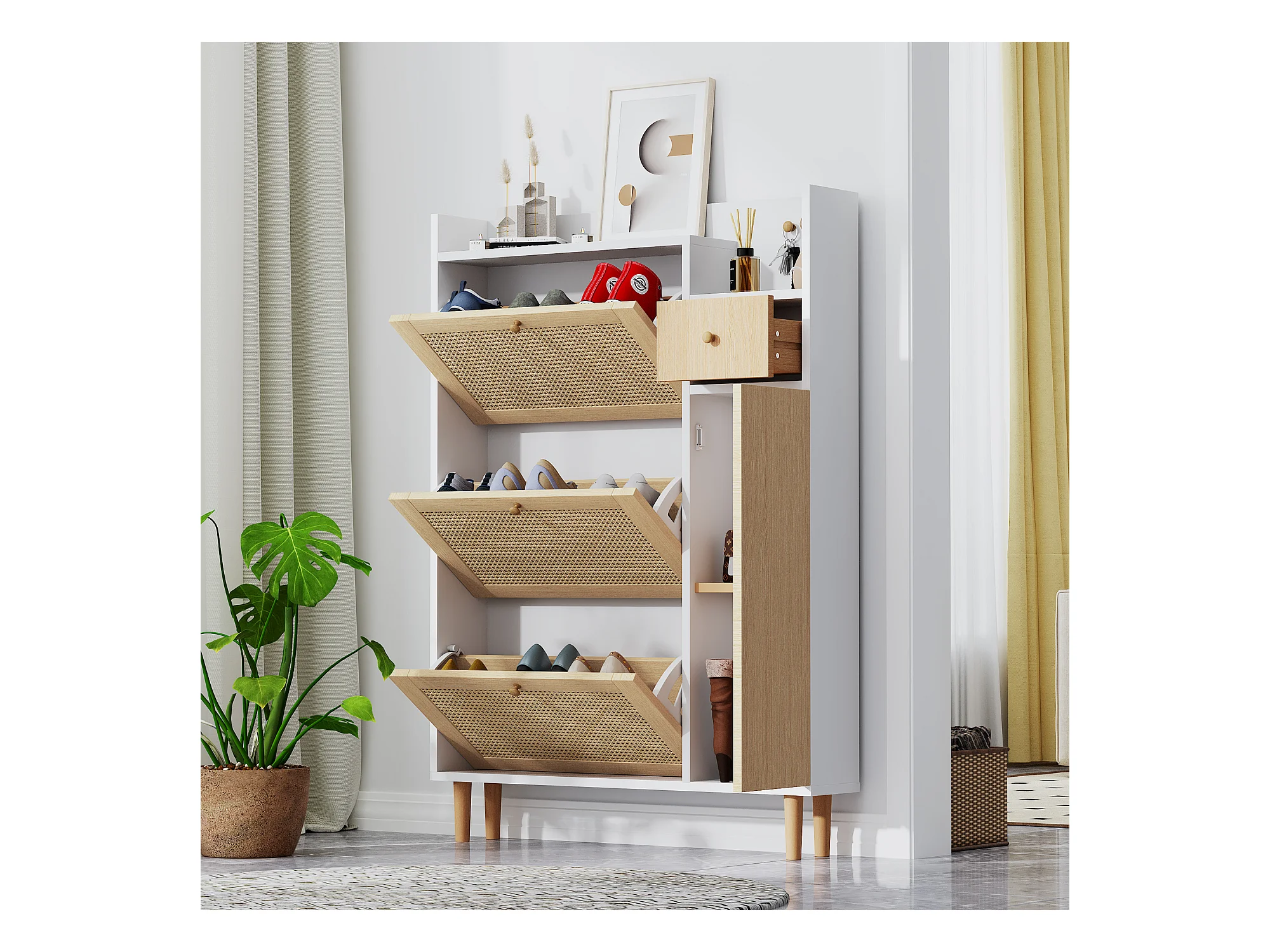 Zapatero de madera MDF de gran capacidad con cajones y solapas para entrada, estilo ratán