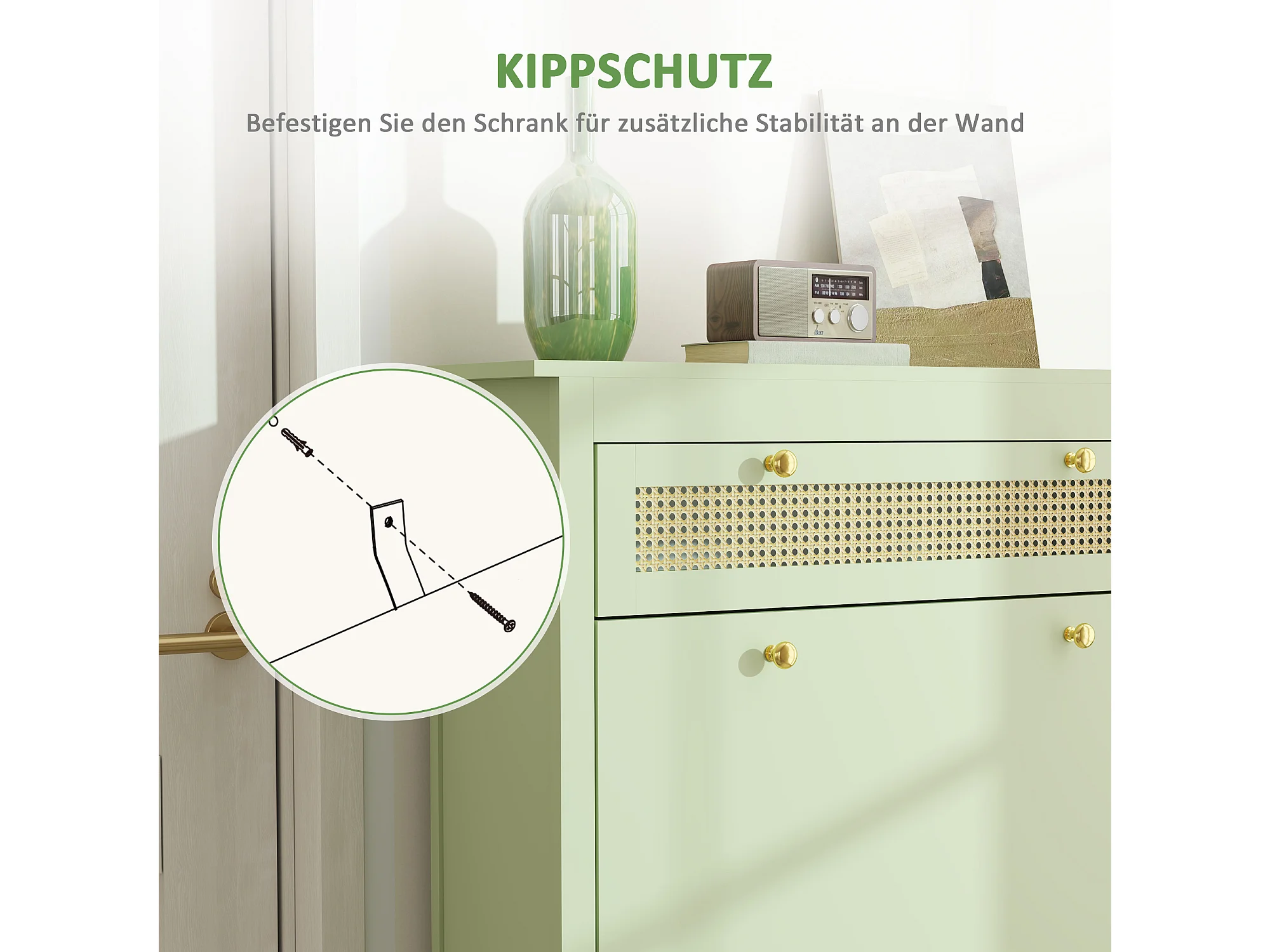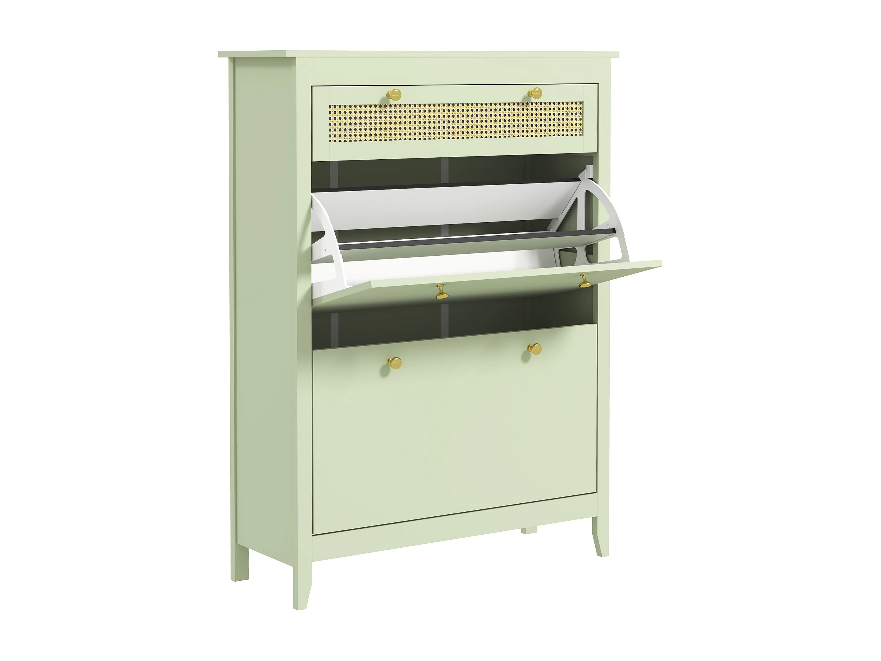 Zapatero de madera verde con 2 aletas y 1 cajón para entrada o pasillo 88x30x120 cm