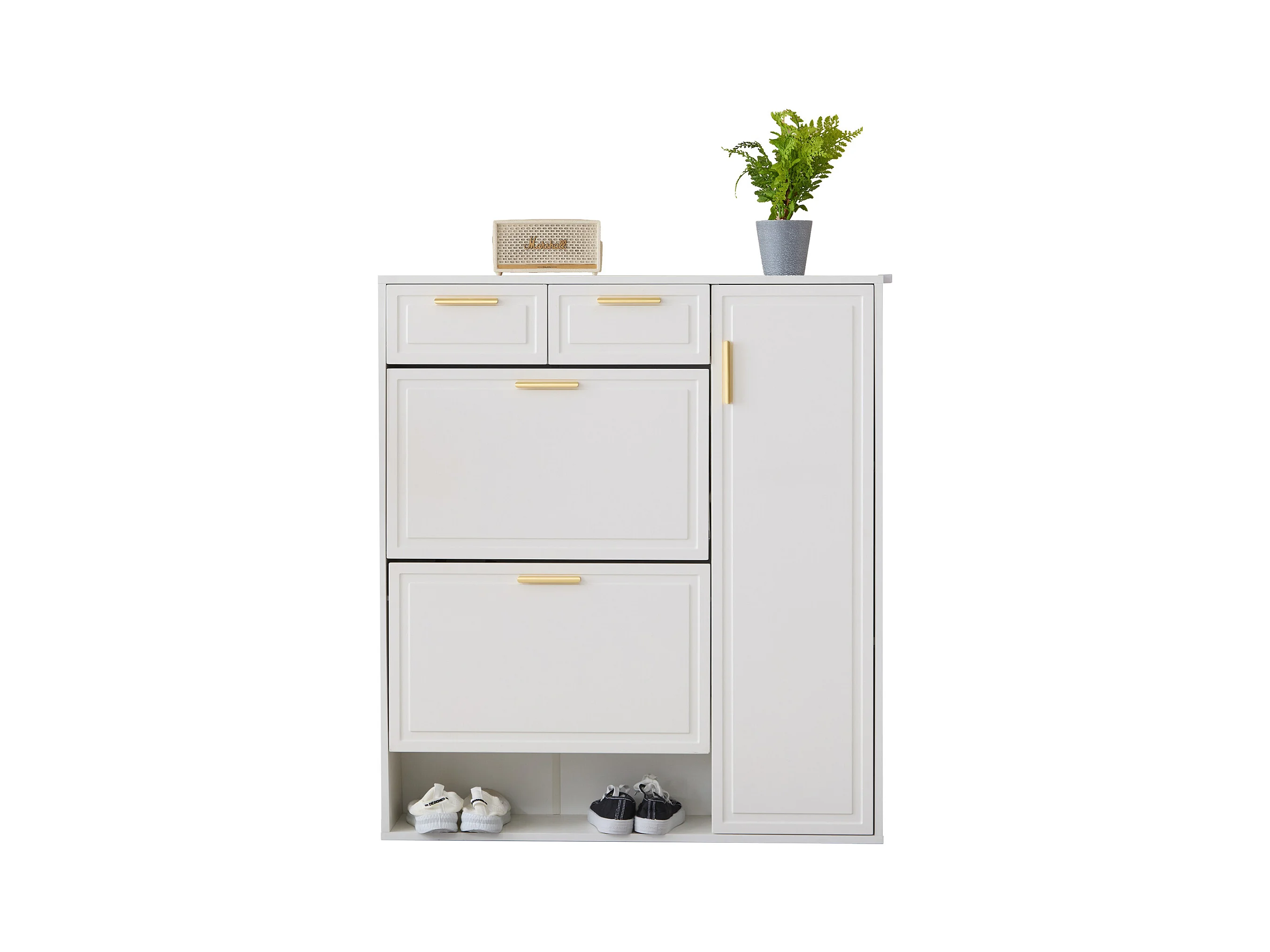 Zapatero de MDF con cajones y estantes regulables para entrada o pasillo blanco