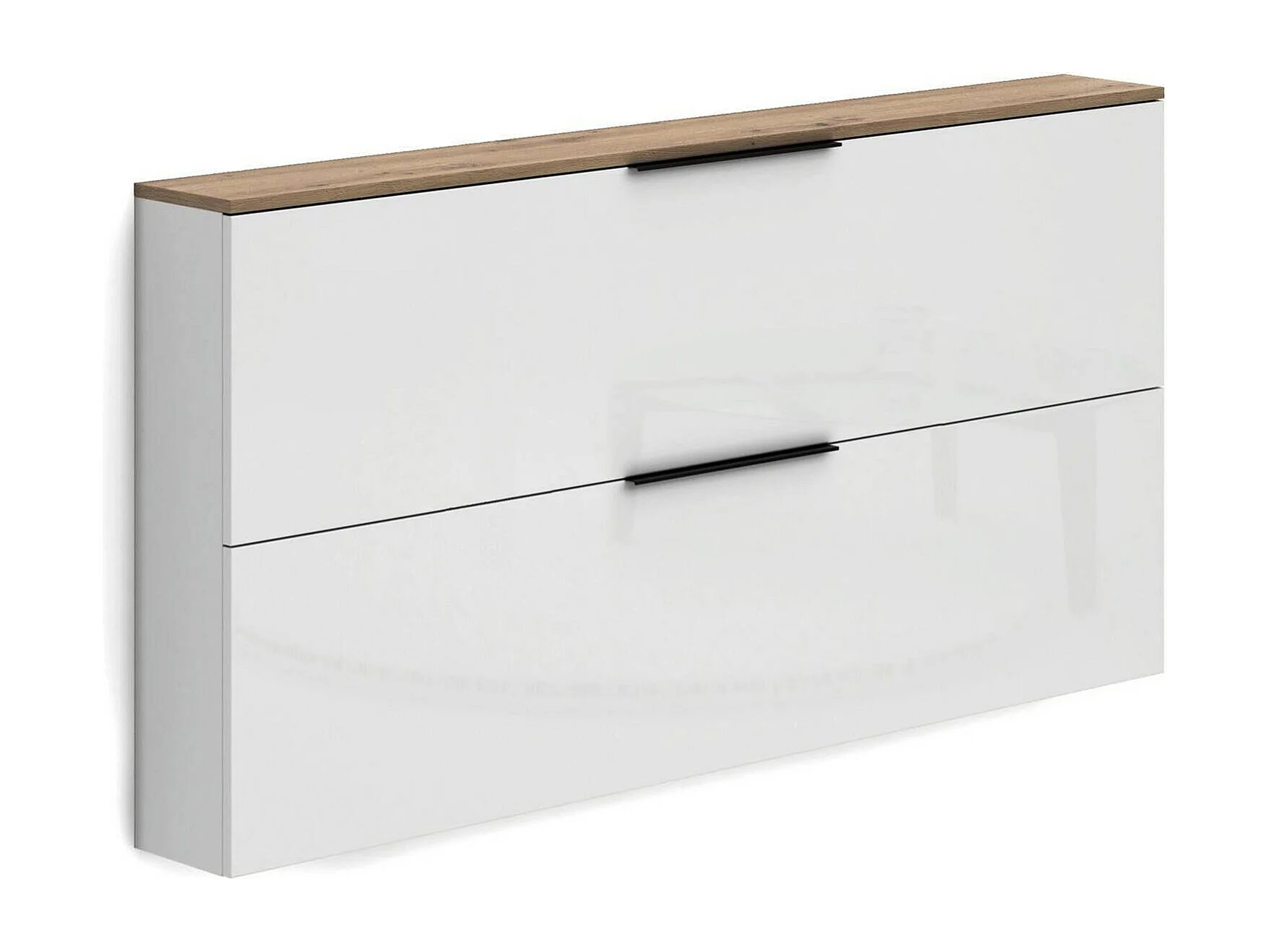 Zapatero Dfurlanett, Zapatero, Armario de entrada multiusos, Zapatero, Made in Italy, 160x19h80 cm, Blanco brillante y Roble