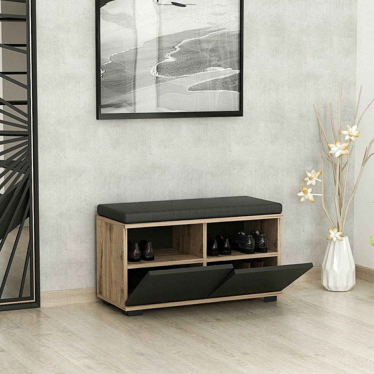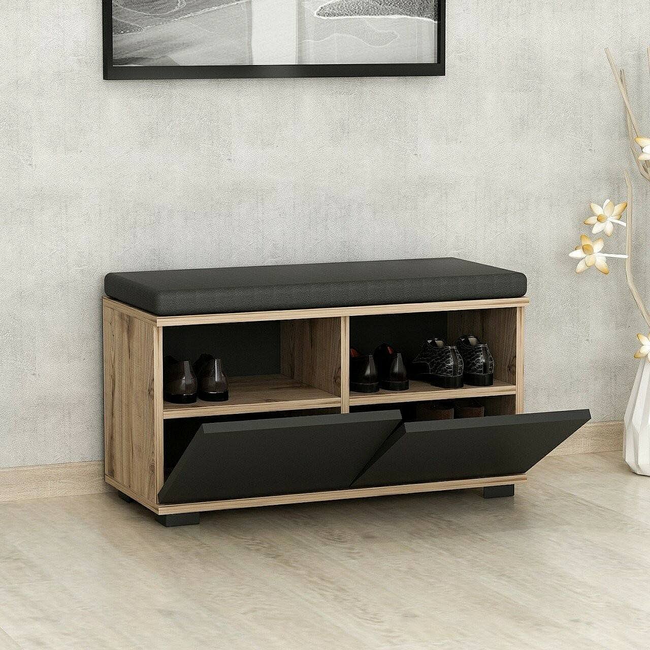 Zapatero Dmoroprescol, Zapatero, Armario de entrada multiusos, Zapatero, 80x35 h42 cm, Nogal y Negro