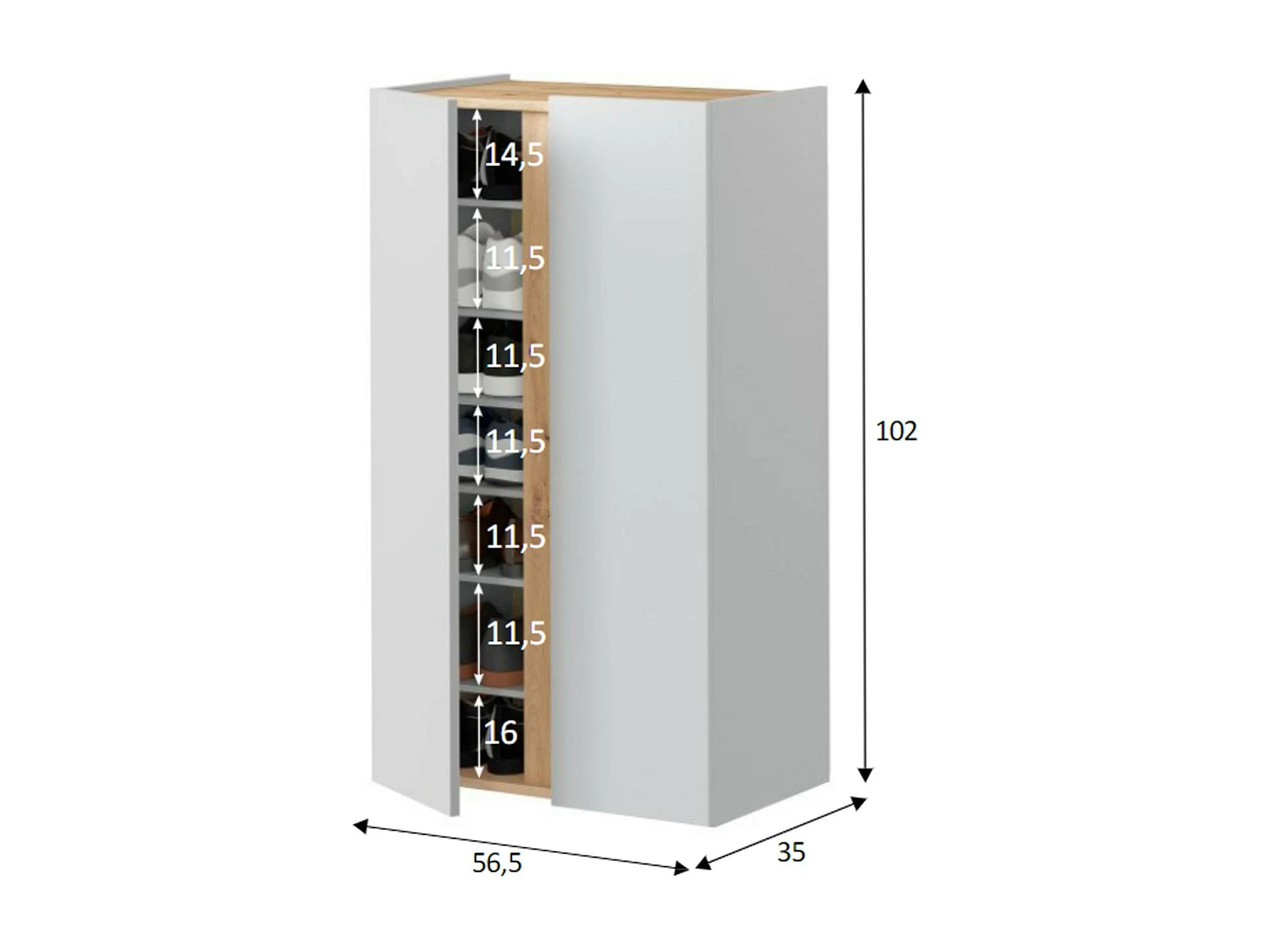 Zapatero Dzennar, Zapatero, Armario de entrada multiusos, Zapatero, 57x35 h102 cm, Blanco y Roble nodoso