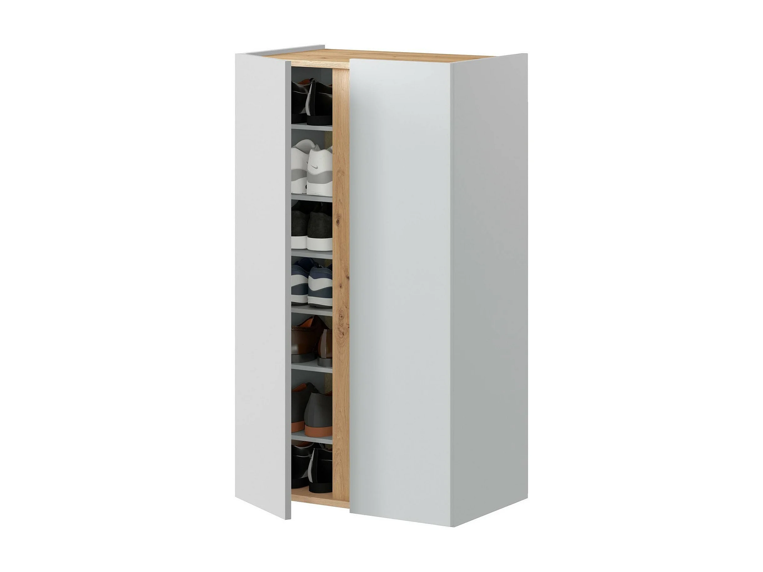 Zapatero Tok, Zapatero de entrada con 4 puertas, Zapatero ahorra espacio, 105x24h112 cm, Blanco y Roble