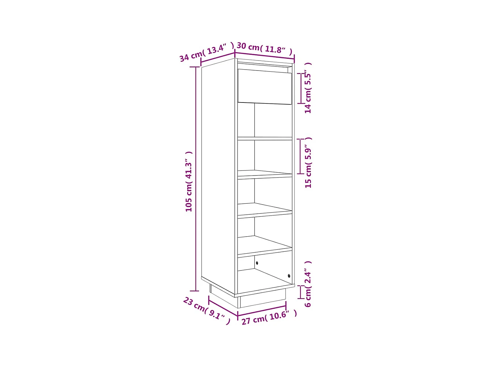 Zapatero gris 30x34x105 cm madera maciza de pino