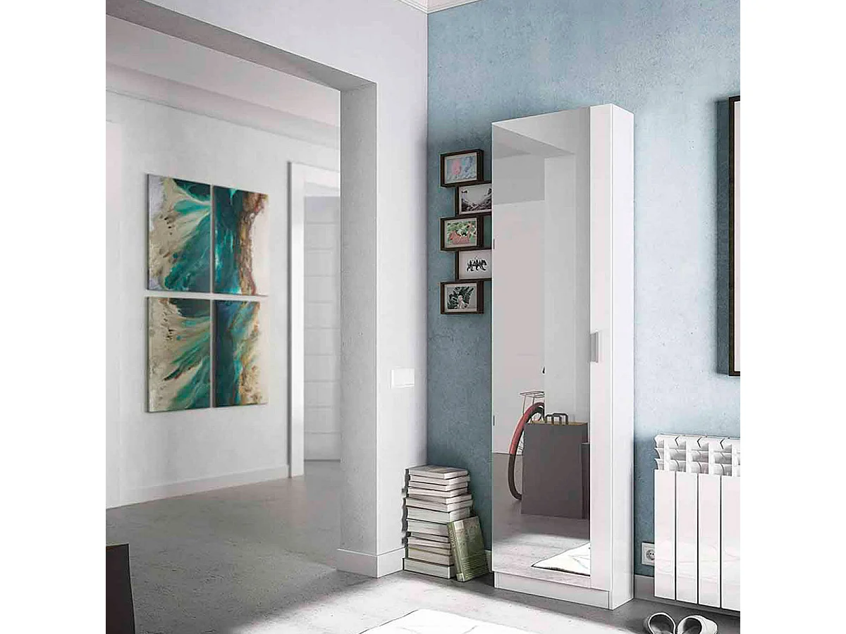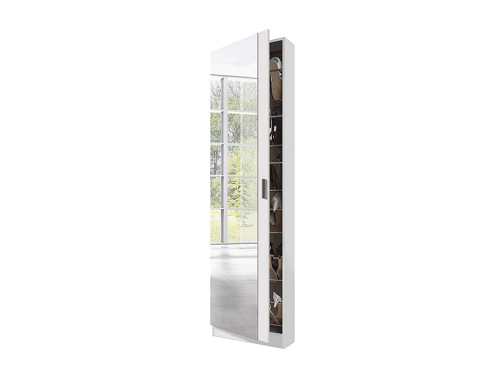 Zapatero Kris 1 puerta + espejo 6 baldas 16 pares blanco 180x50x20 cm