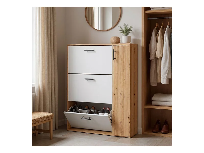 Zapatero Leia Blanco Artik (Blanco Mate) - Roble Nodi