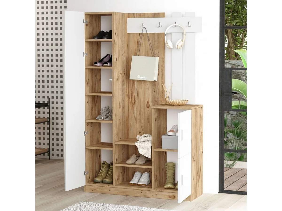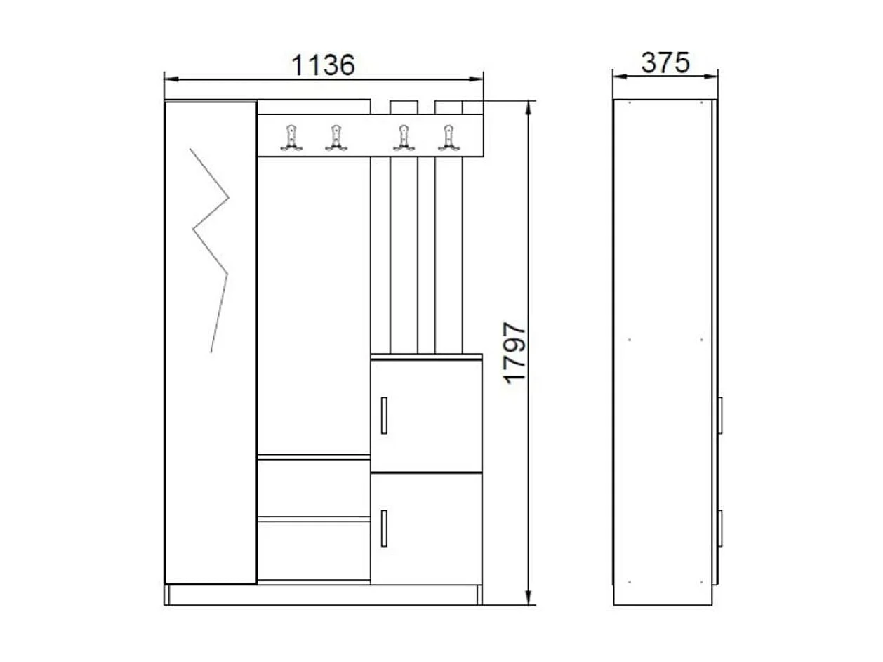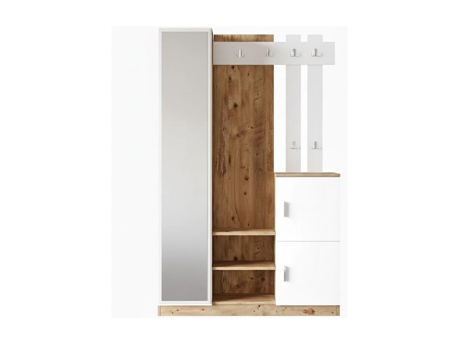 Zapatero Loreto espejo con 10 compartimentos y ganchos cambria/blanco 179,7x113,6x37,5 cm