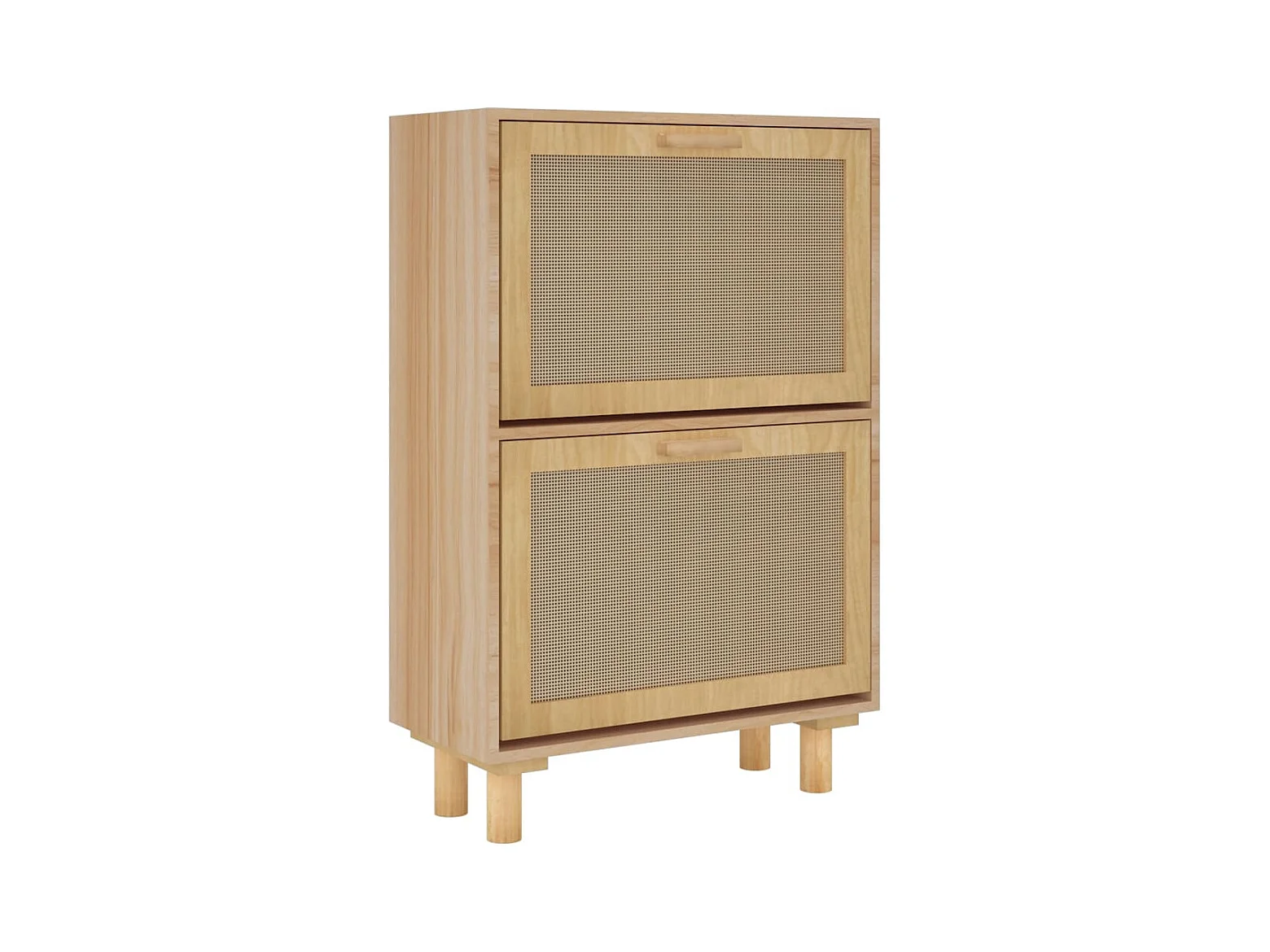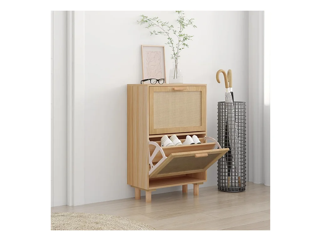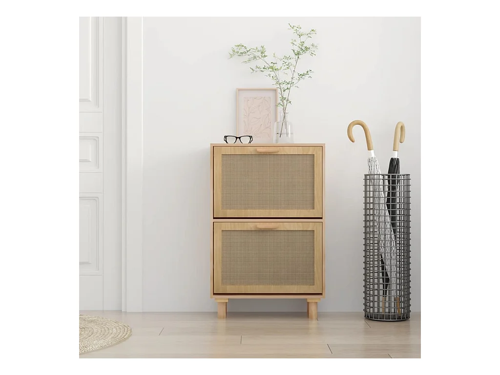 Zapatero madera contrachapada marrón ratán natural 52x25x80 cm ES719527