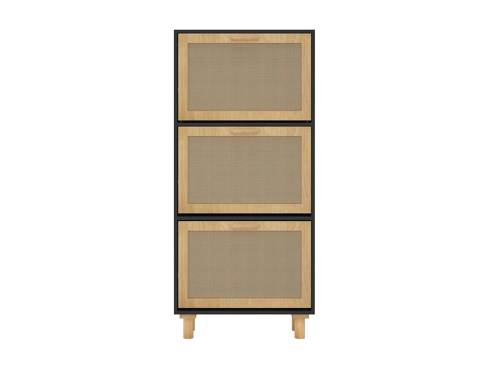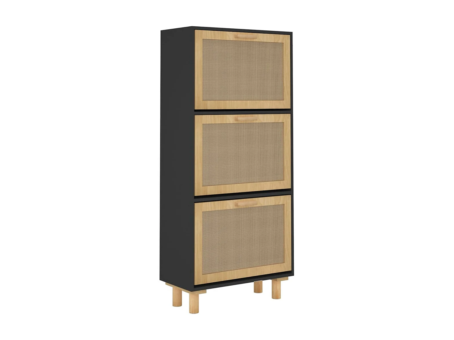 Zapatero madera contrachapada negro ratán natural 52x25x115 cm ES864729