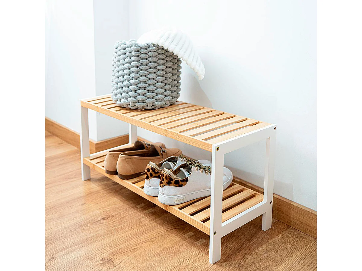 Banco zapatero Tarde Homcom 2 estantes natural 45x50x28 cm