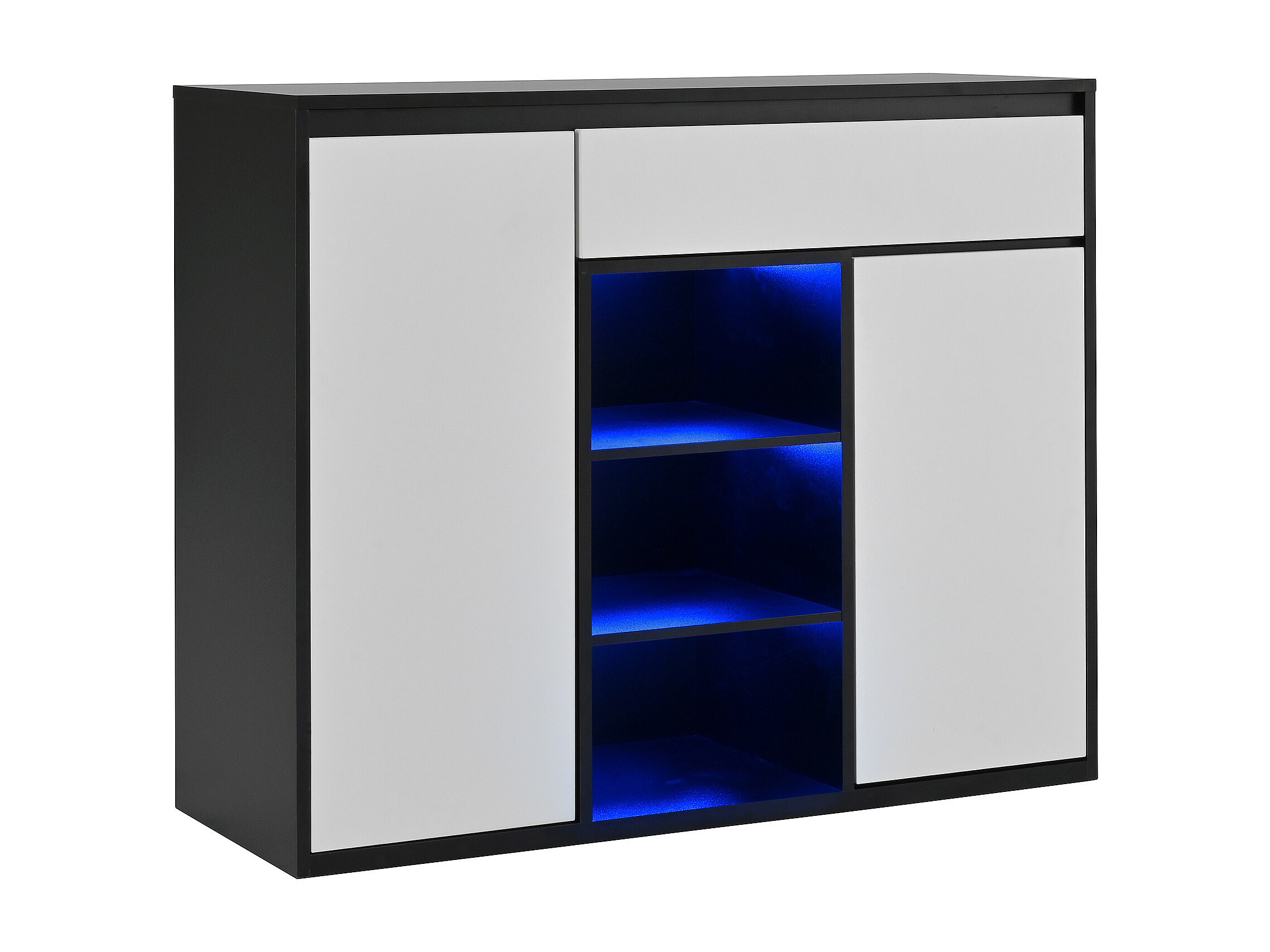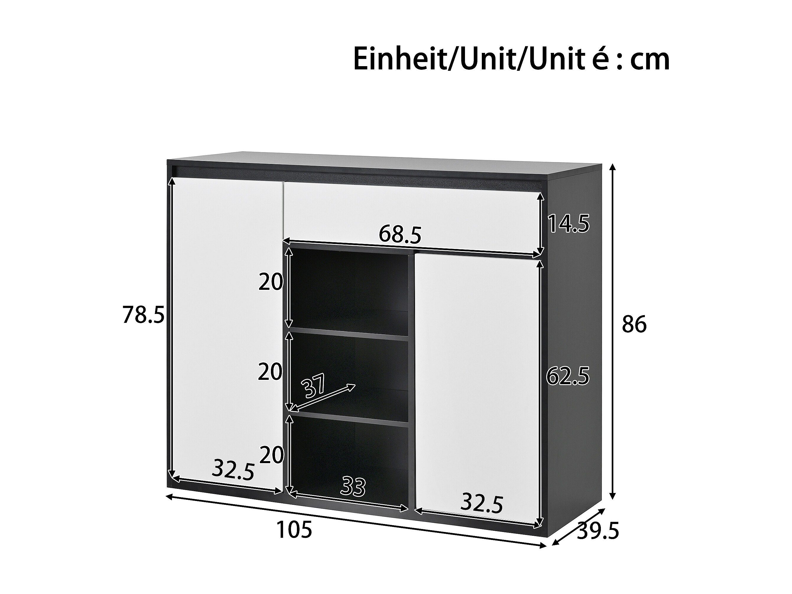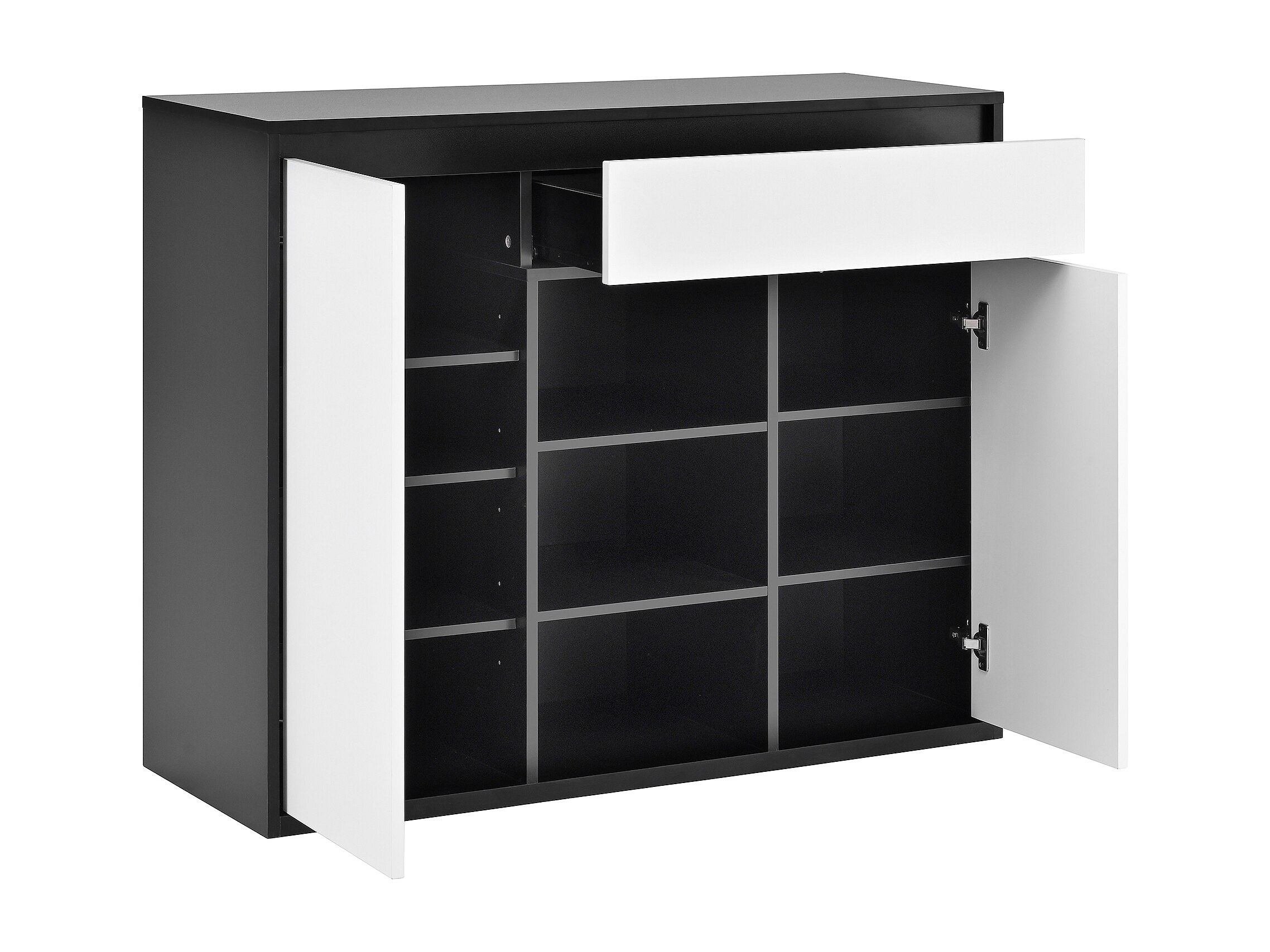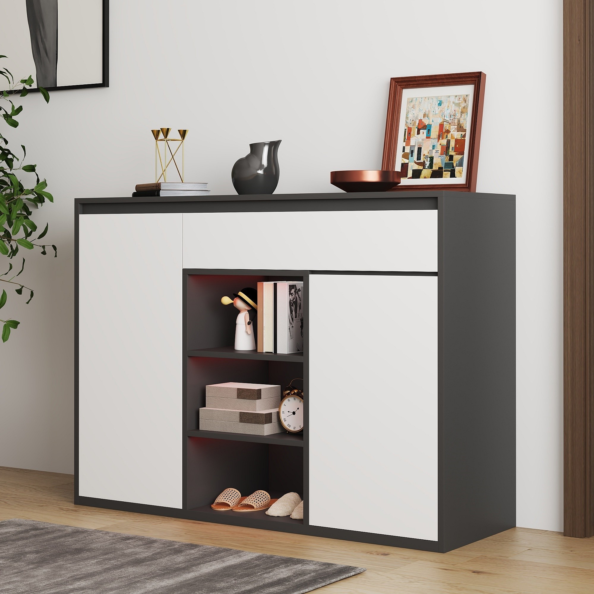Zapatero moderno en blanco y negro, con 2 puertas y 1 cajón, estante ajustable, ideal para la entrada, con capacidad para 12-17 pares de zapatos.