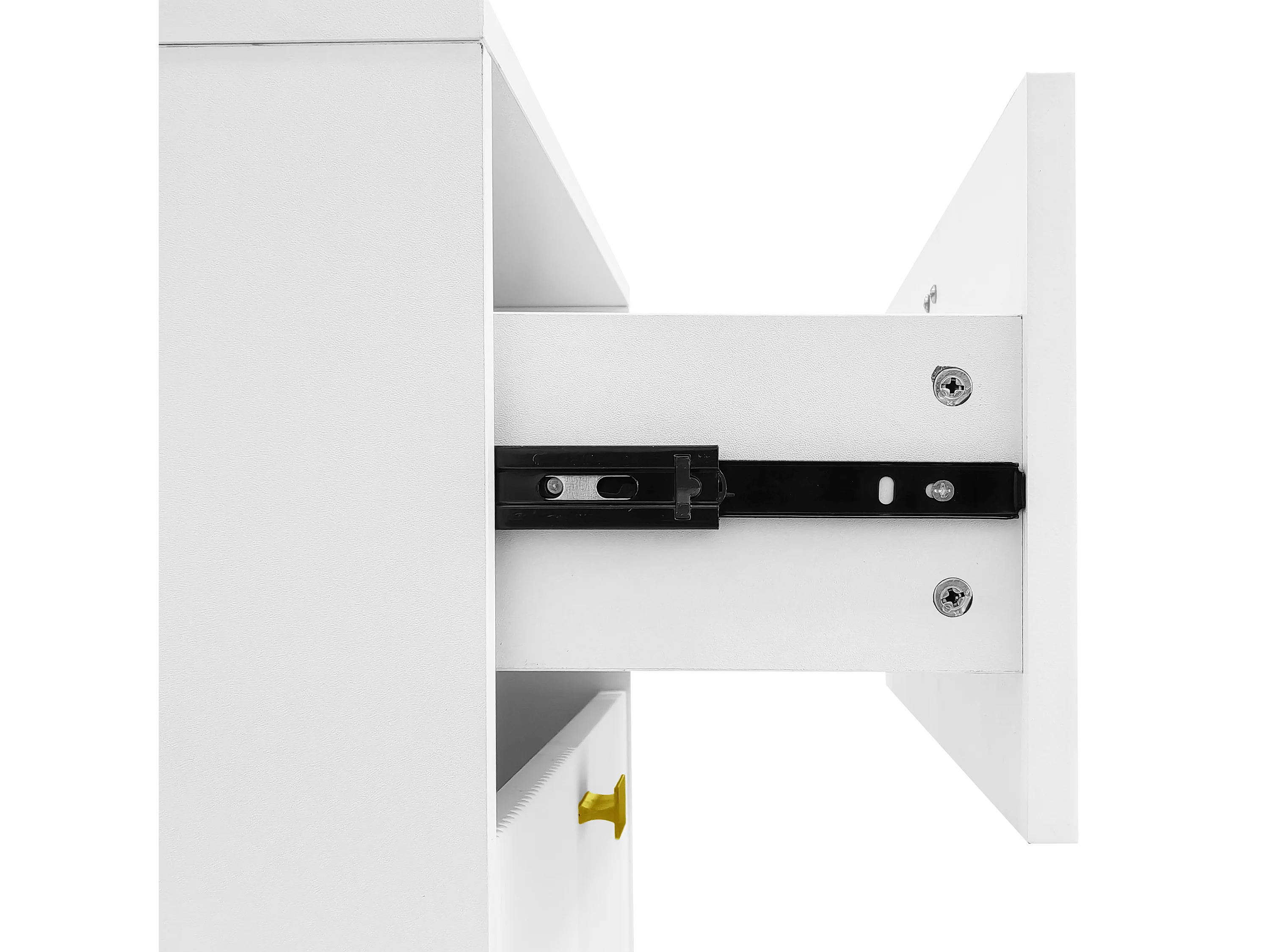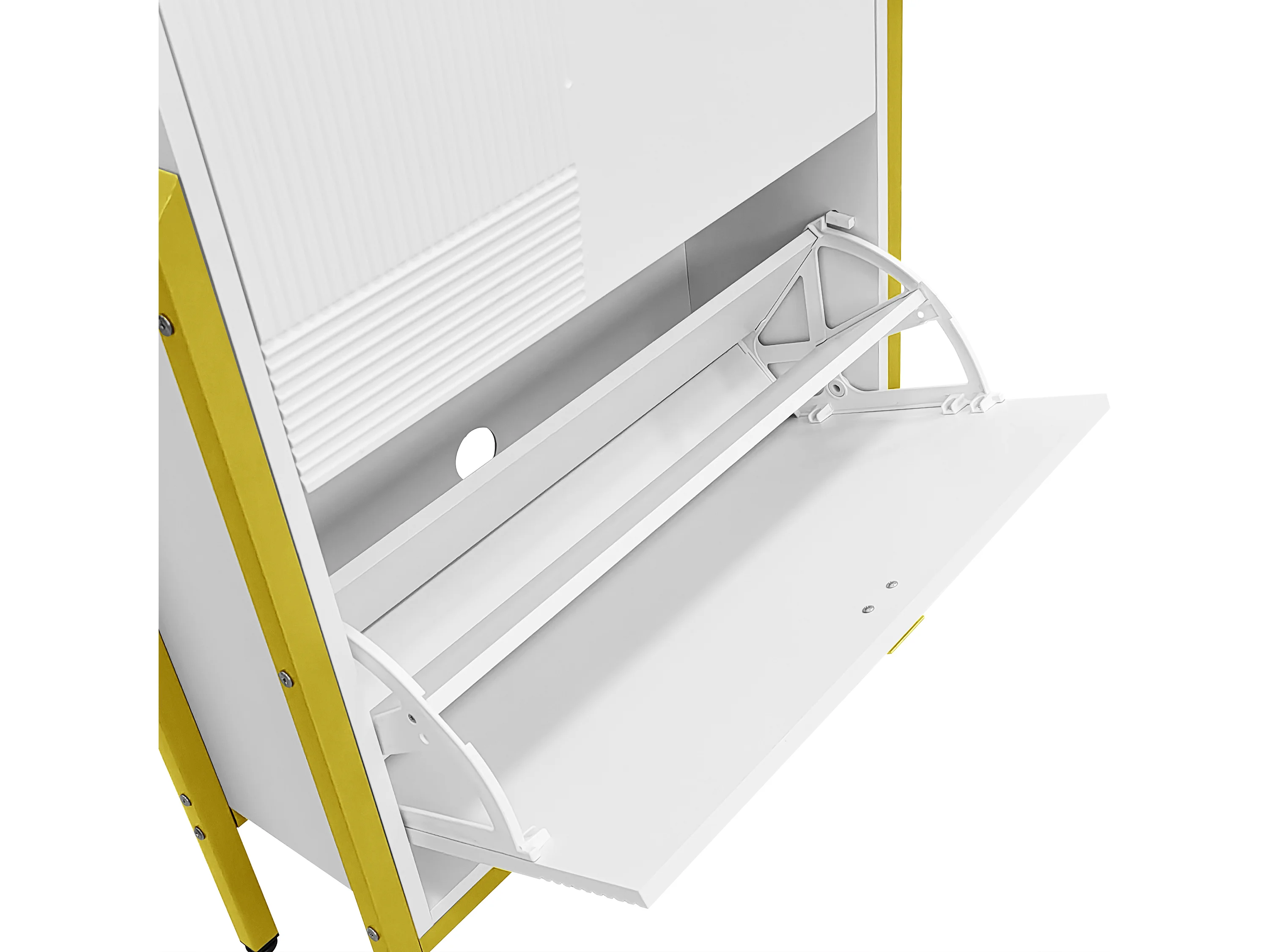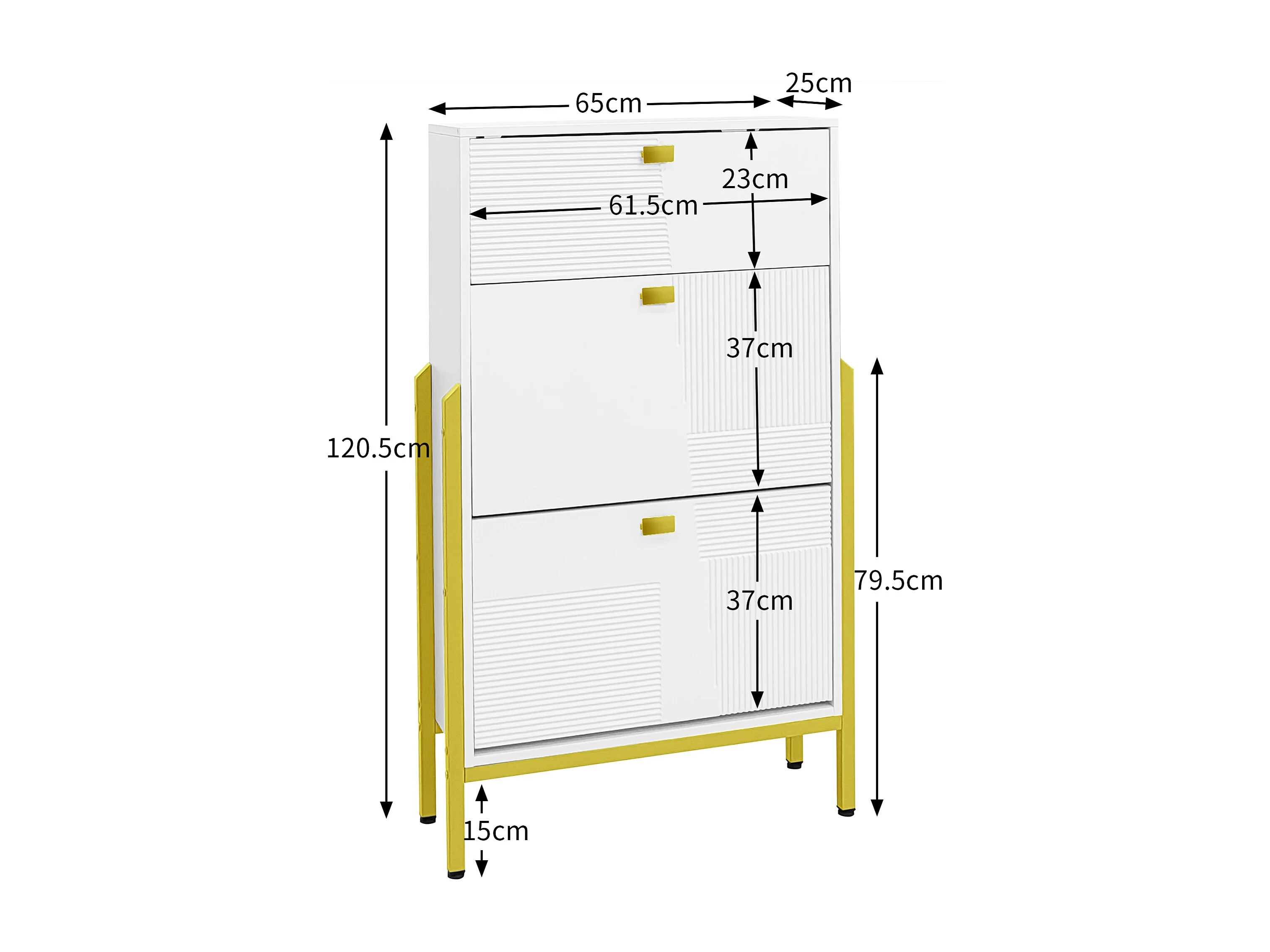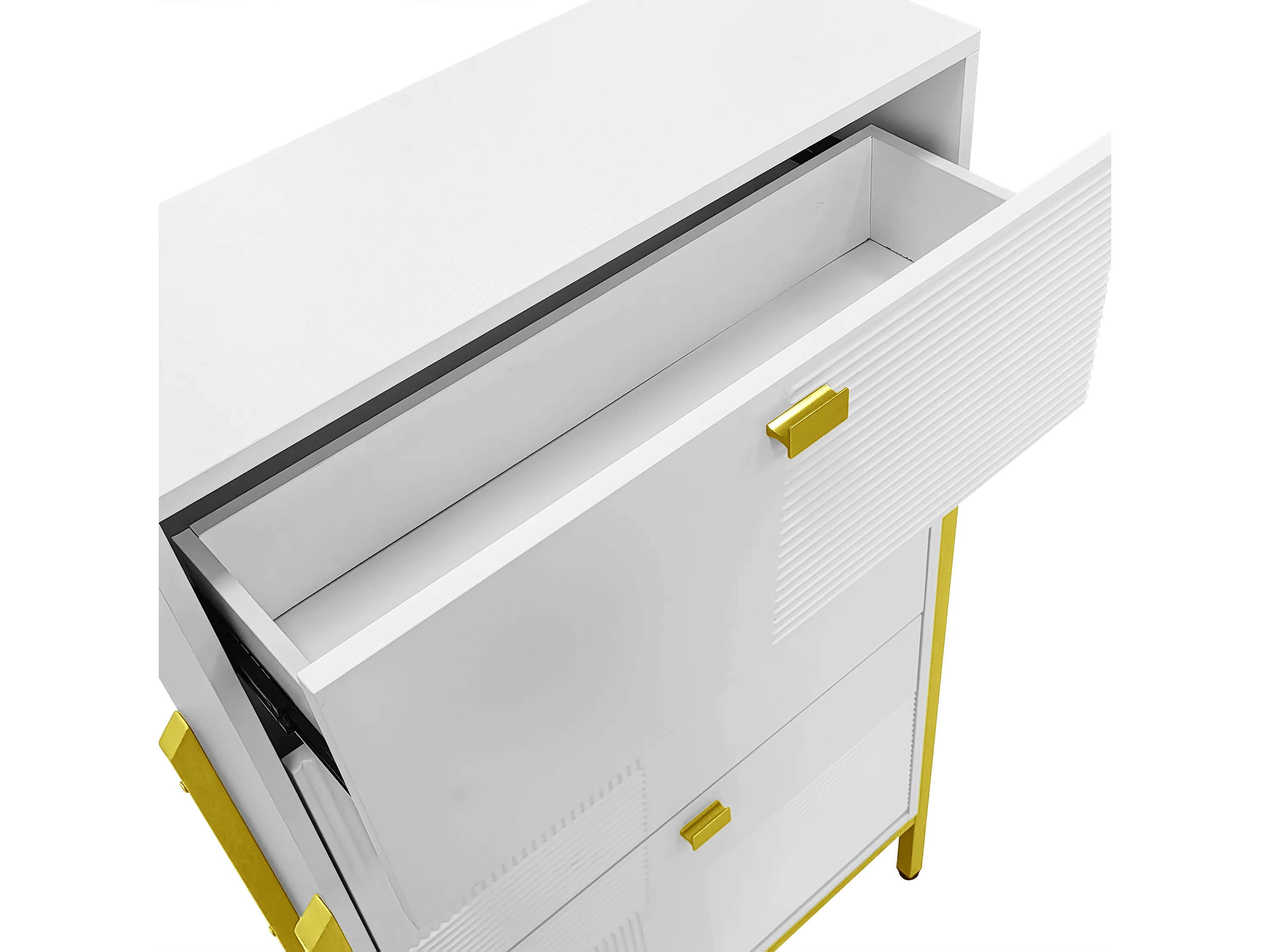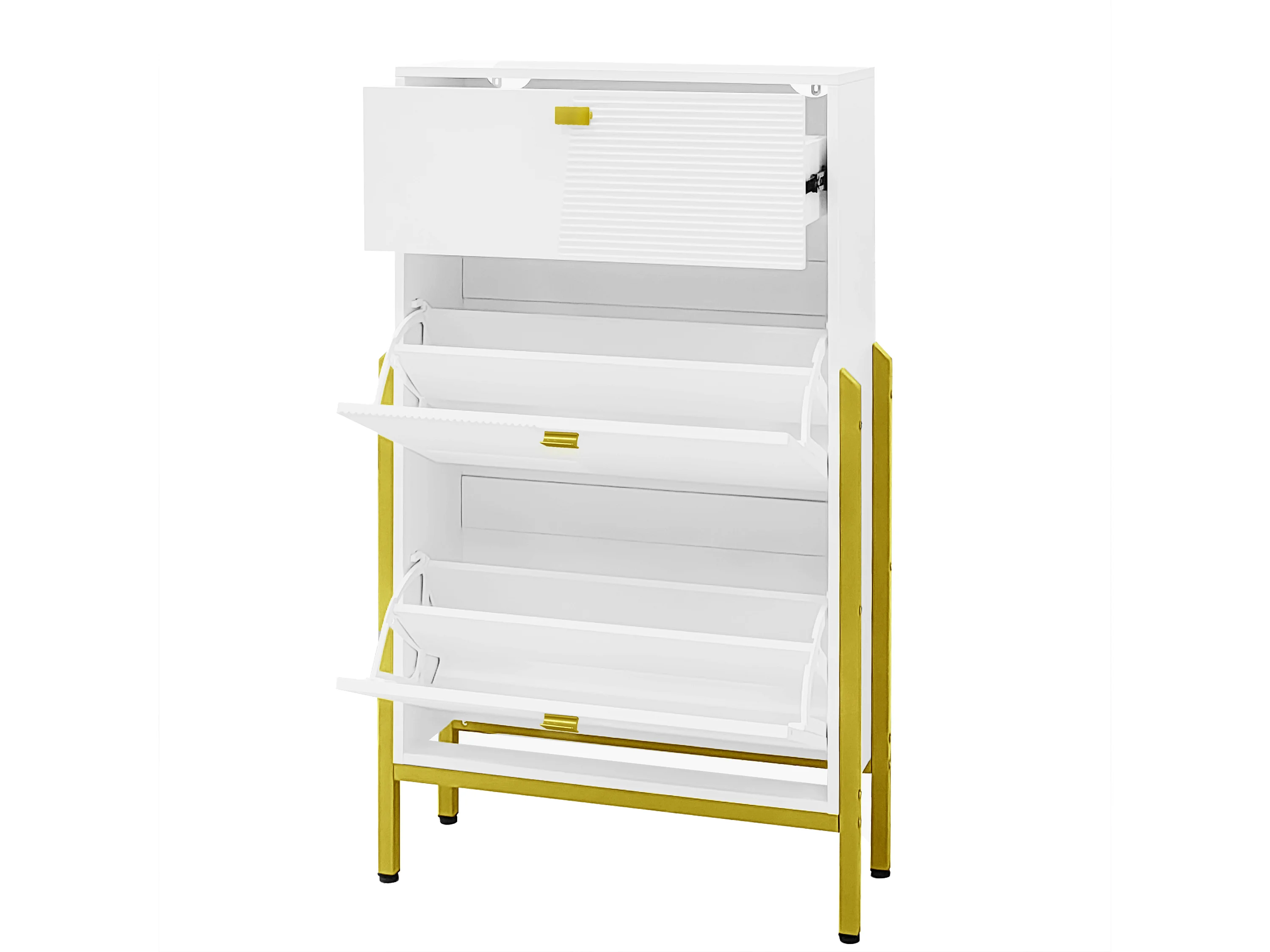 Zapatero multifuncional doble con asas doradas y patas doradas, color blanco