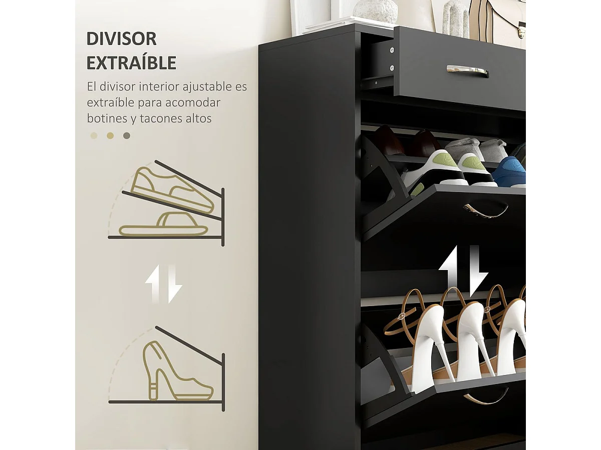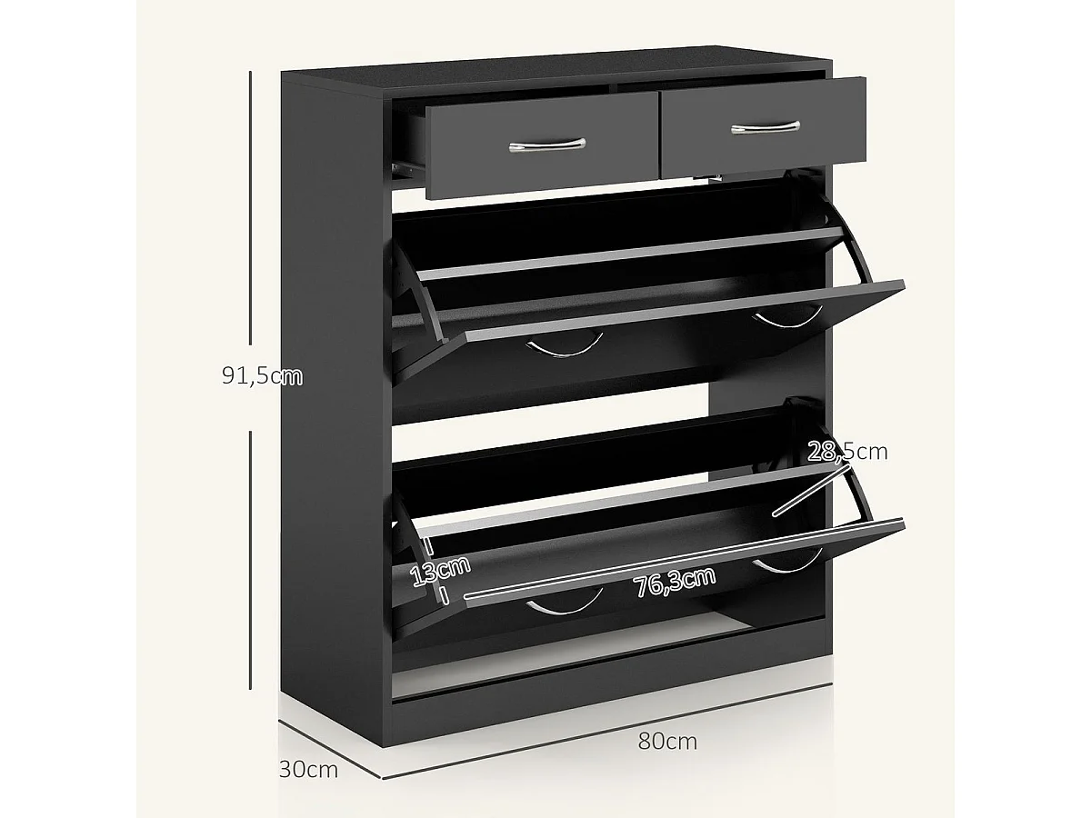 Zapatero Noche Homcom 2 cajones con 2 puertas negro 91,5x80x30 cm