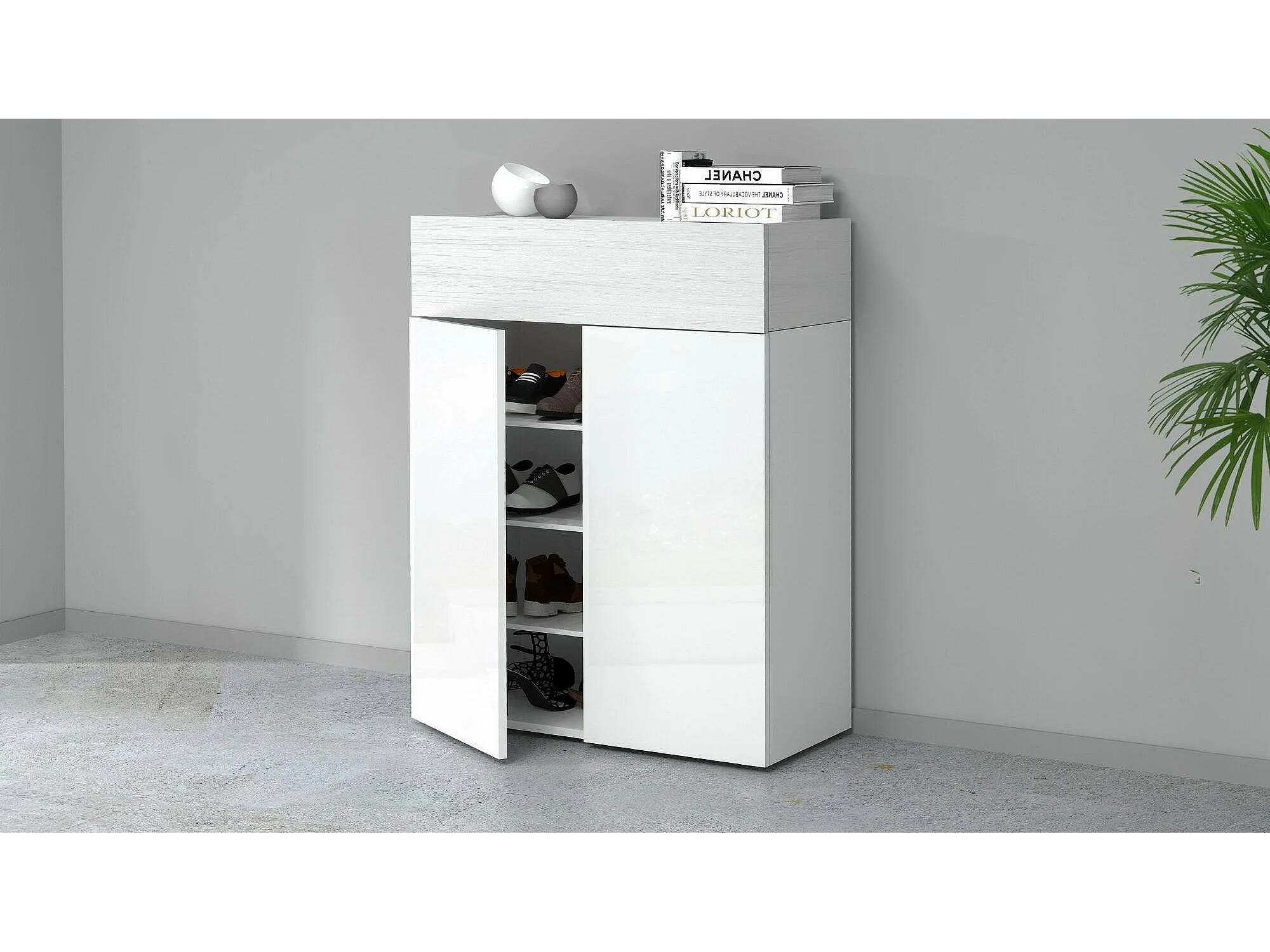 Zapatero Oliviero, zapatero que ahorra espacio con 3 puertas, armario de entrada multifuncional, 76x38h100 cm, efecto alerce blanco