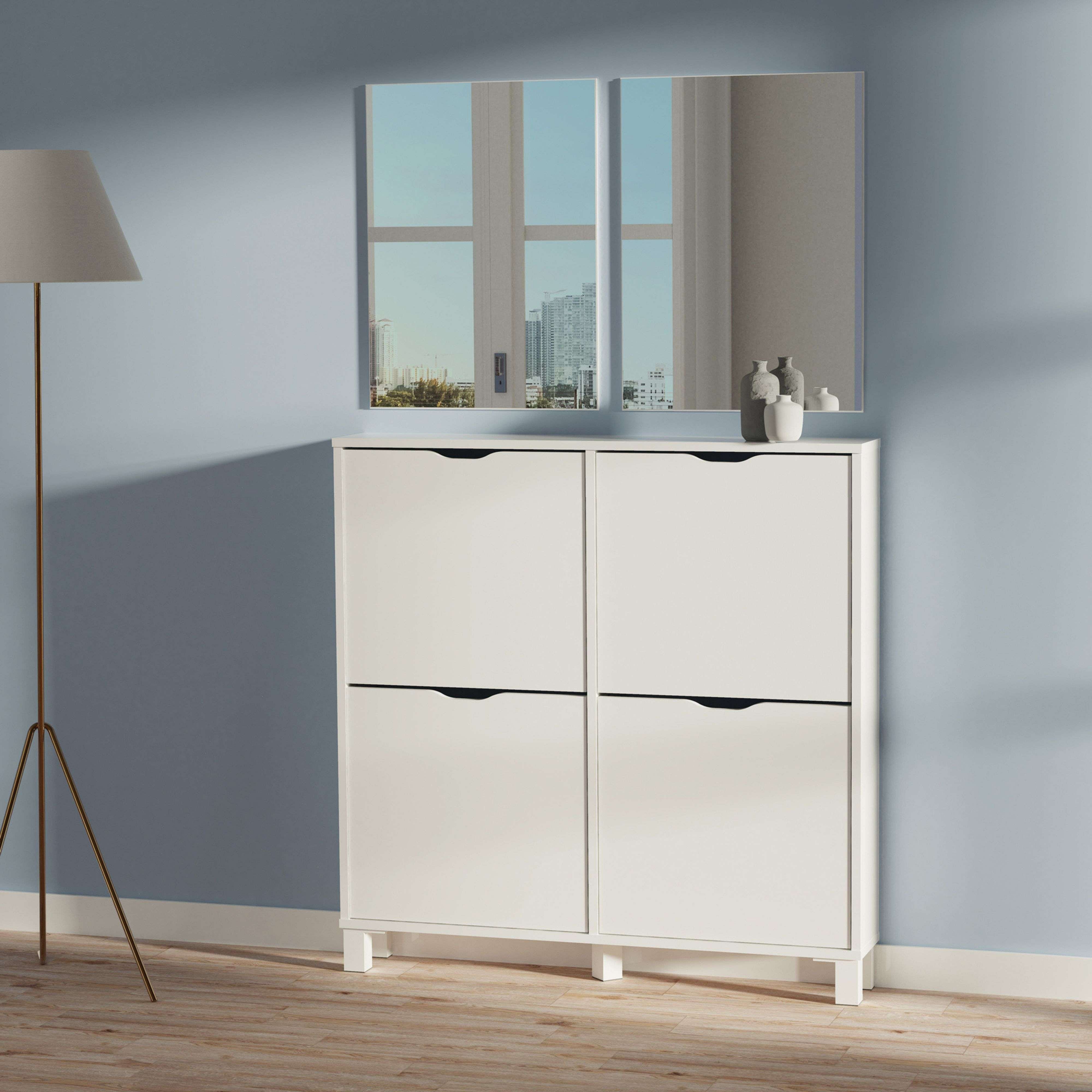 Zapatero Virgo 2 compartimentos + espejo blanco 67x63x17 cm
