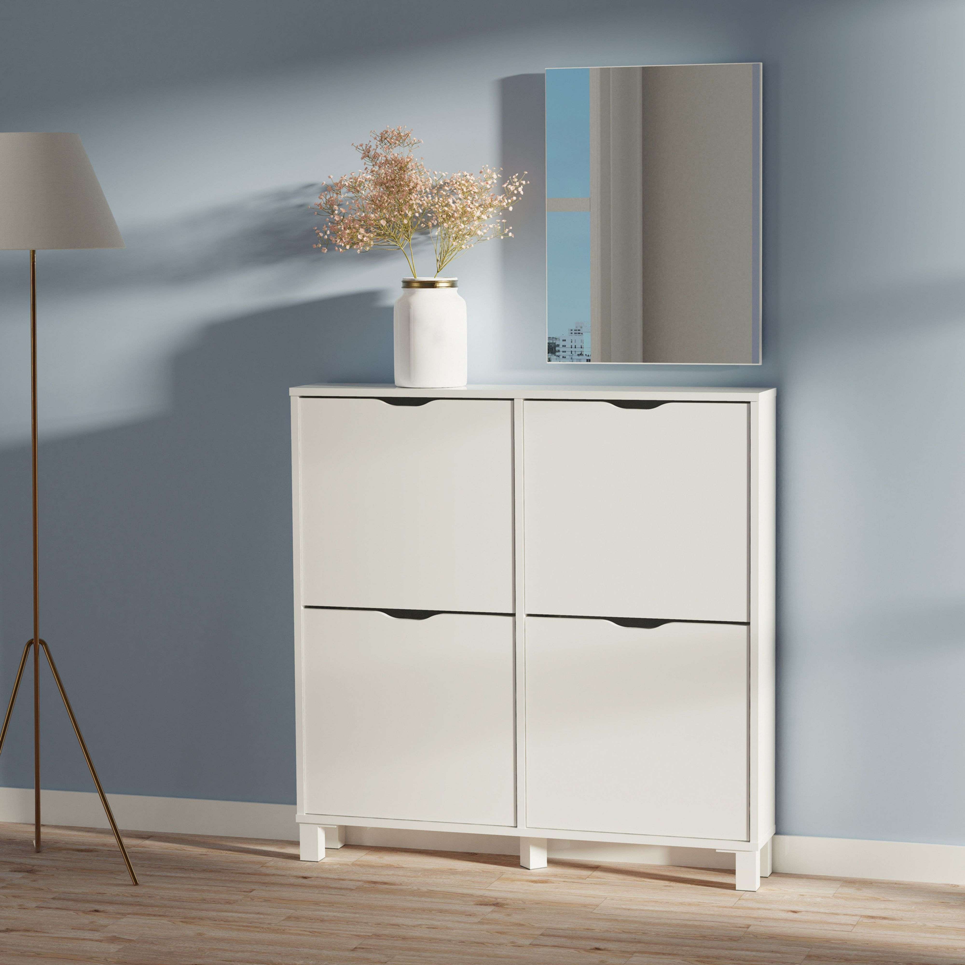 Zapatero Tokio 4 Puertas 5 Baldas Blanco Mate Roble 101 cm