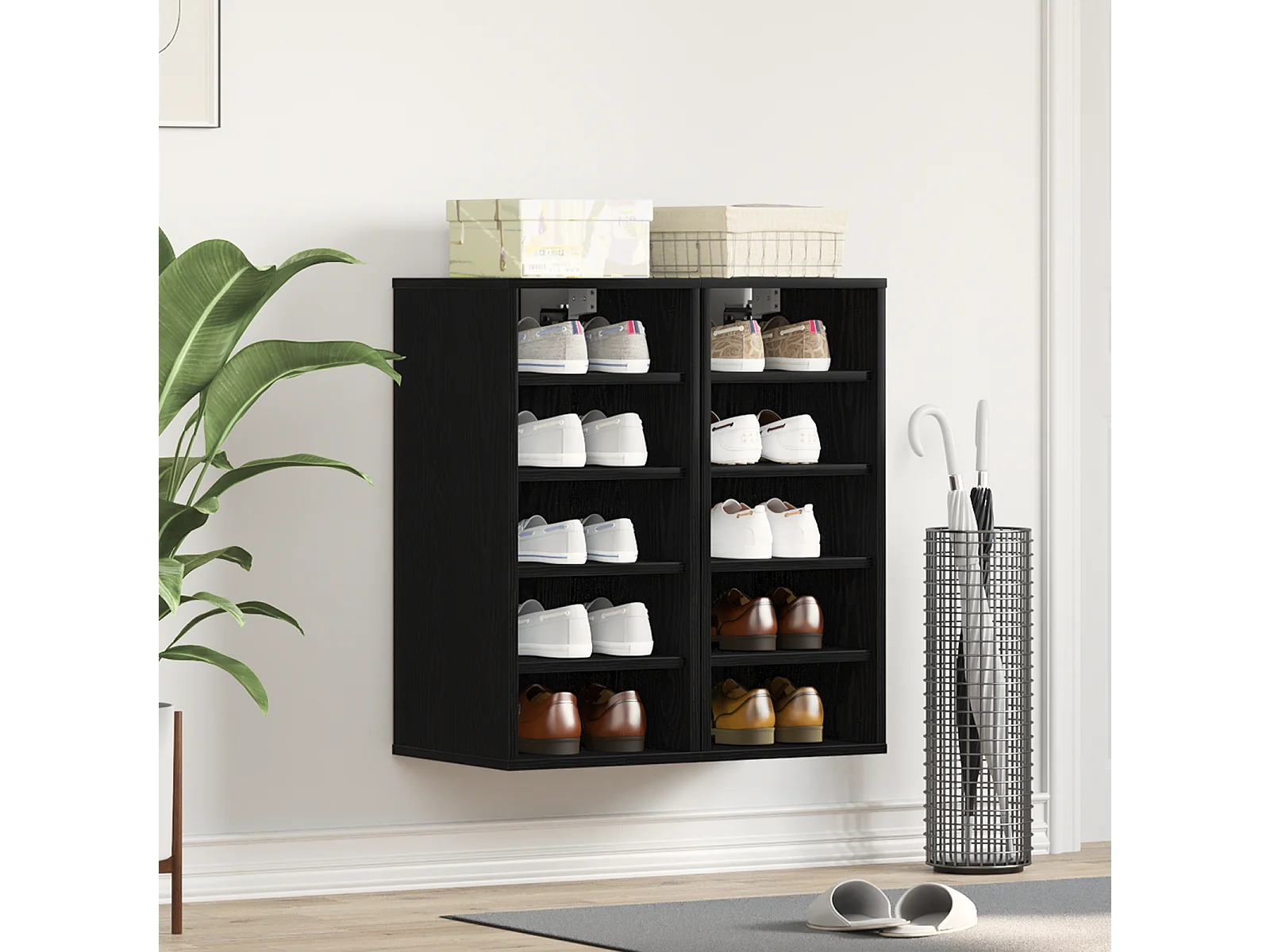 Zapatero de roble negro 32x35x70 cm en madera compuesta
