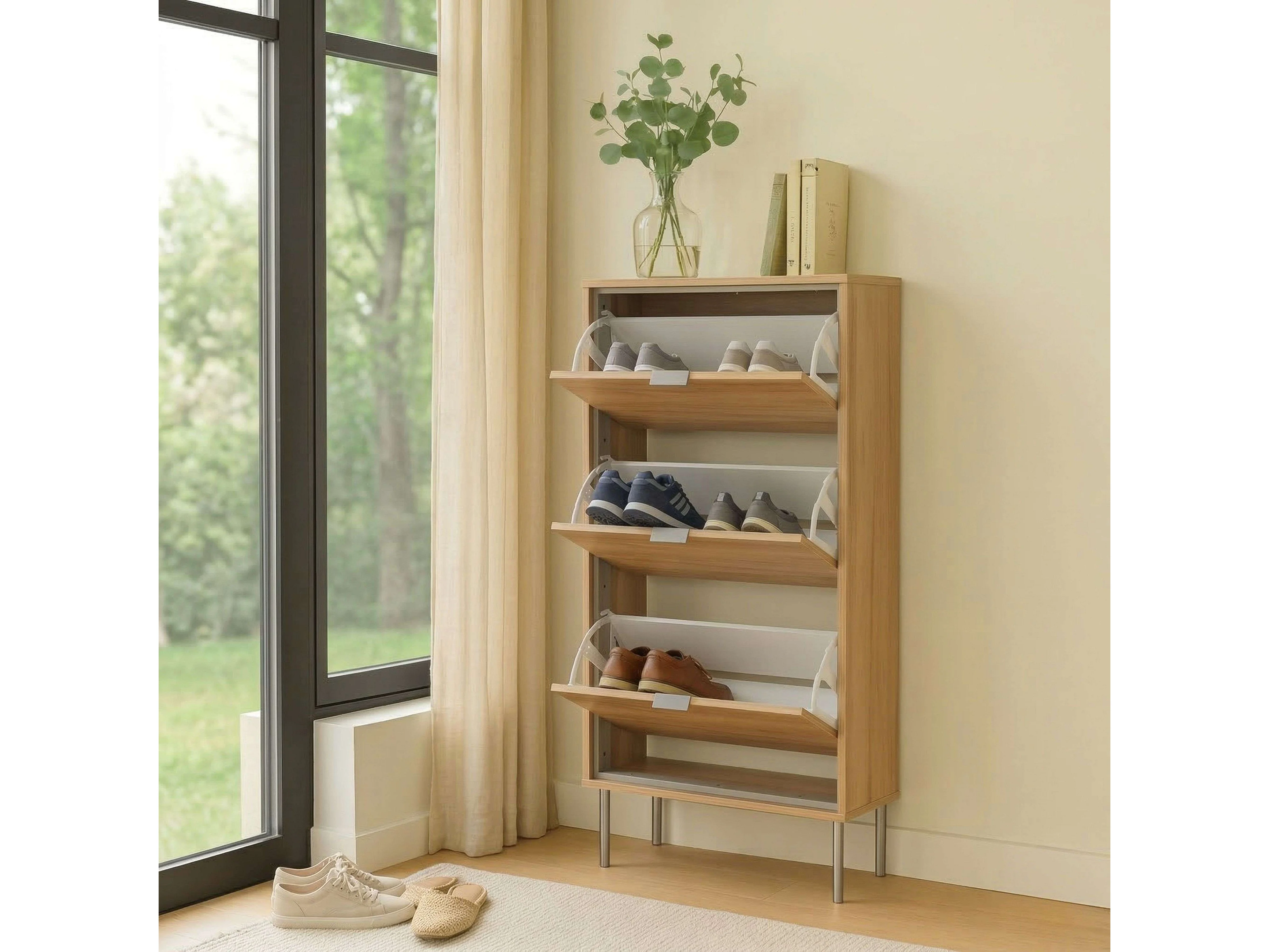 Zapatero Sete 3 puertas roble cambrian roble sonoma y madera claro 18 pares