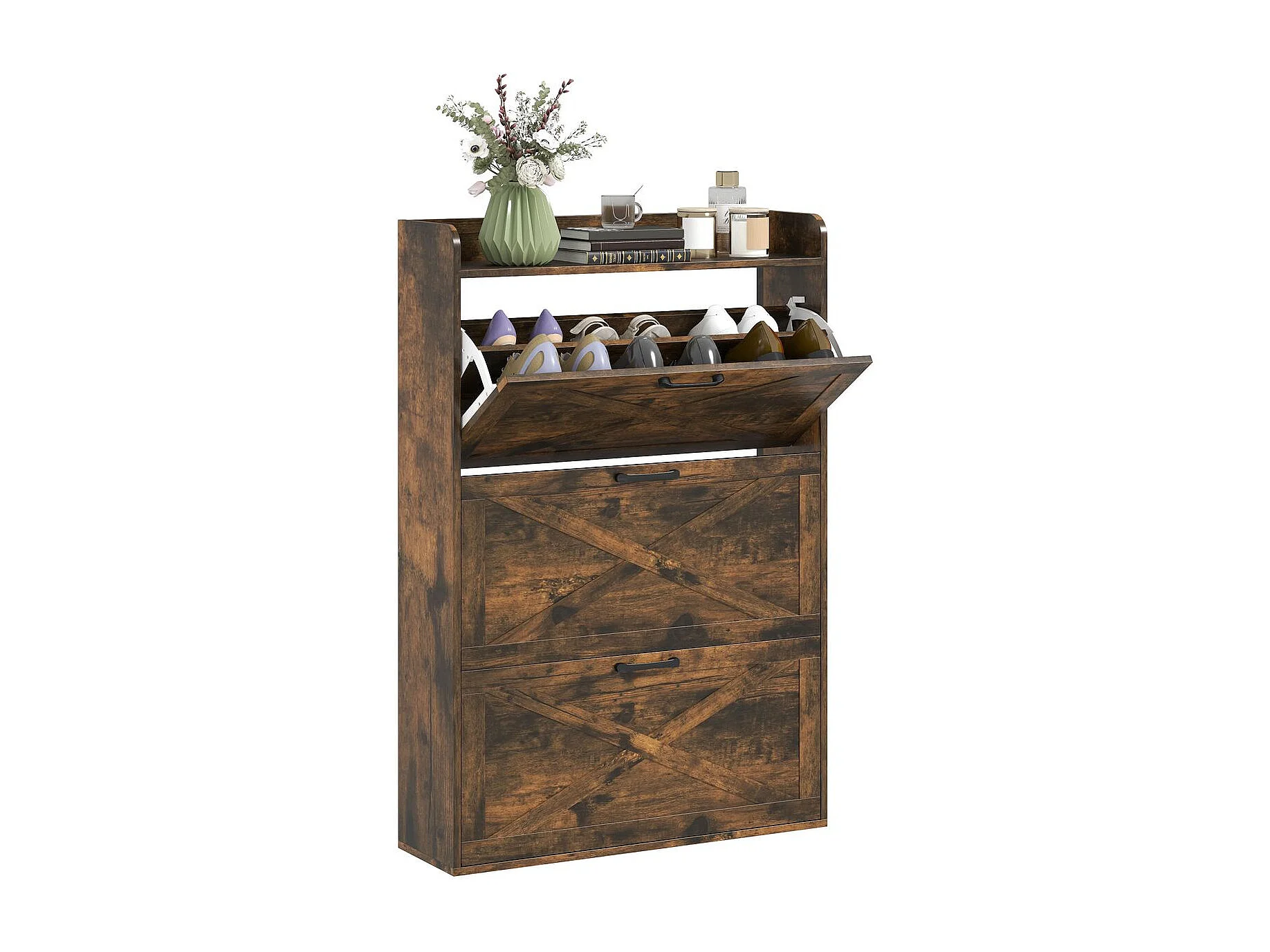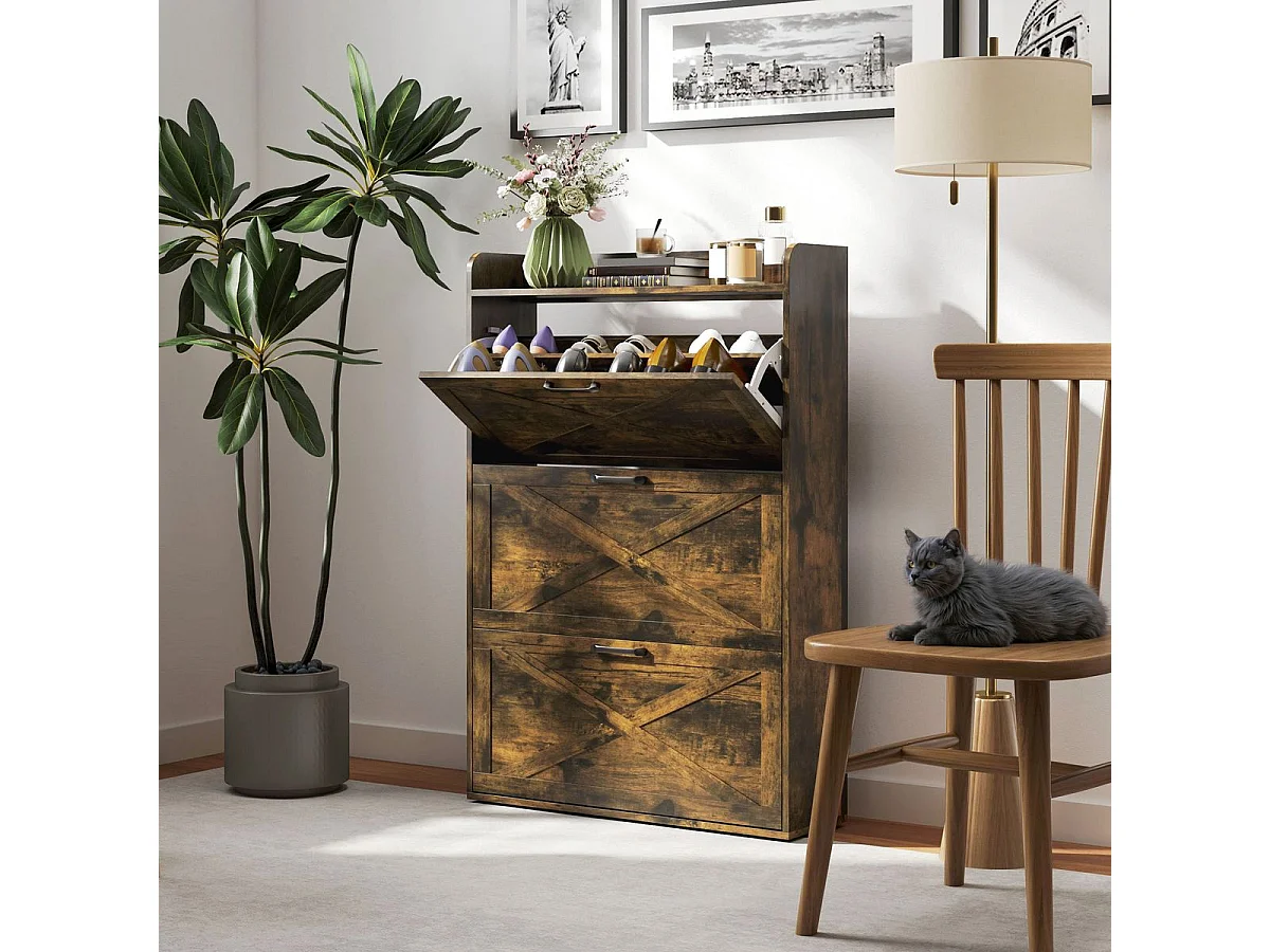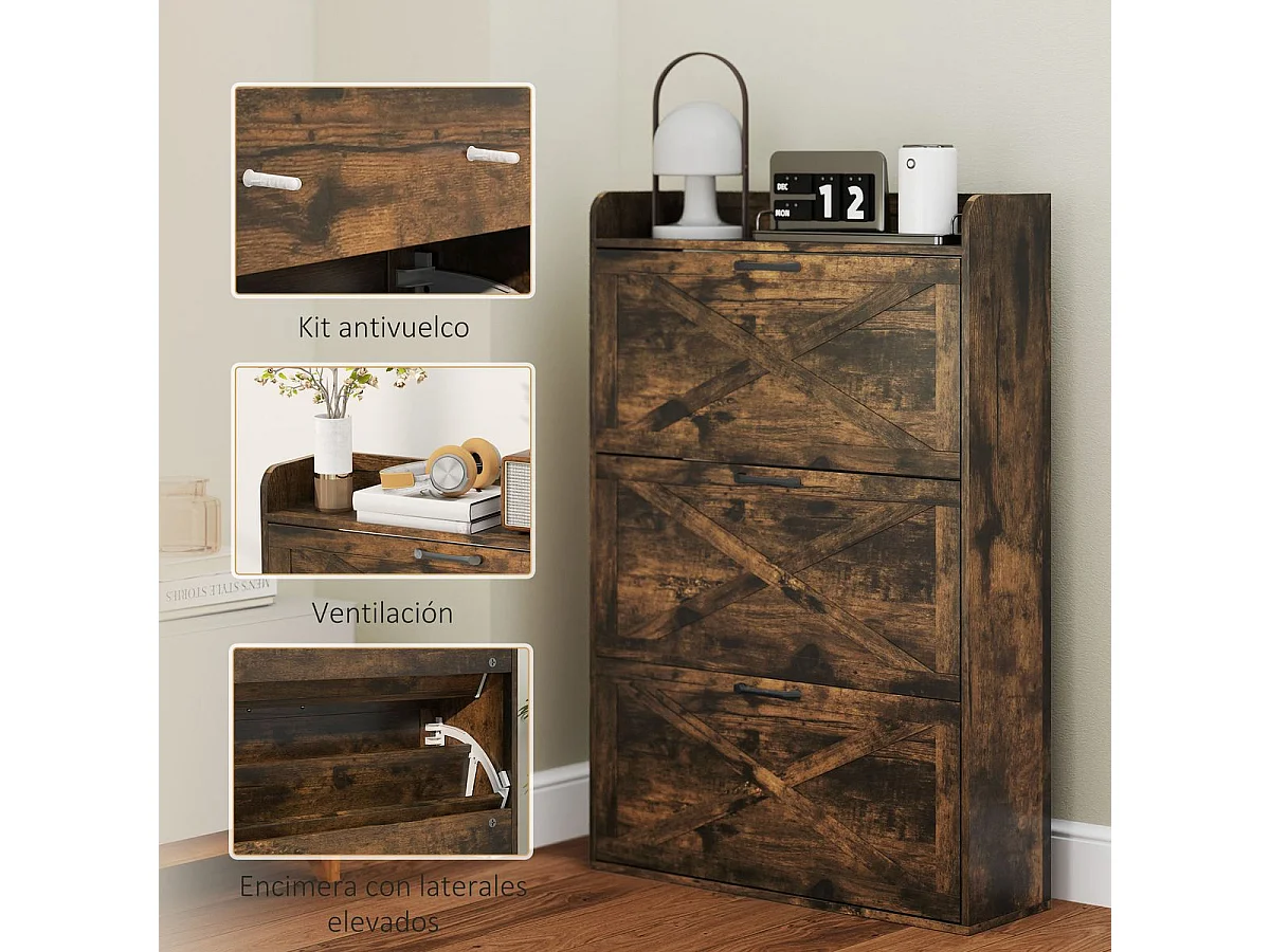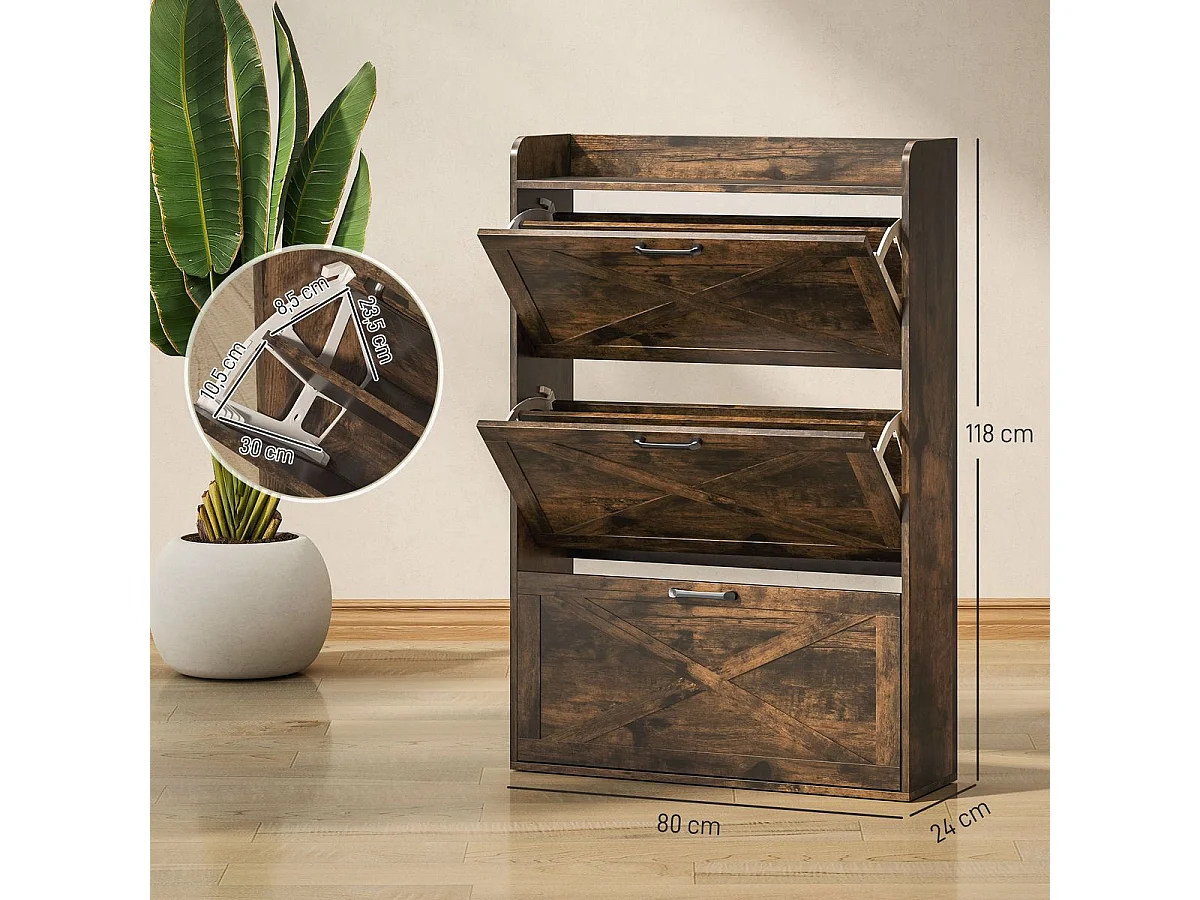 Zapatero Story Homcom 24 pares 3 cajones marrón 118x80x24 cm
