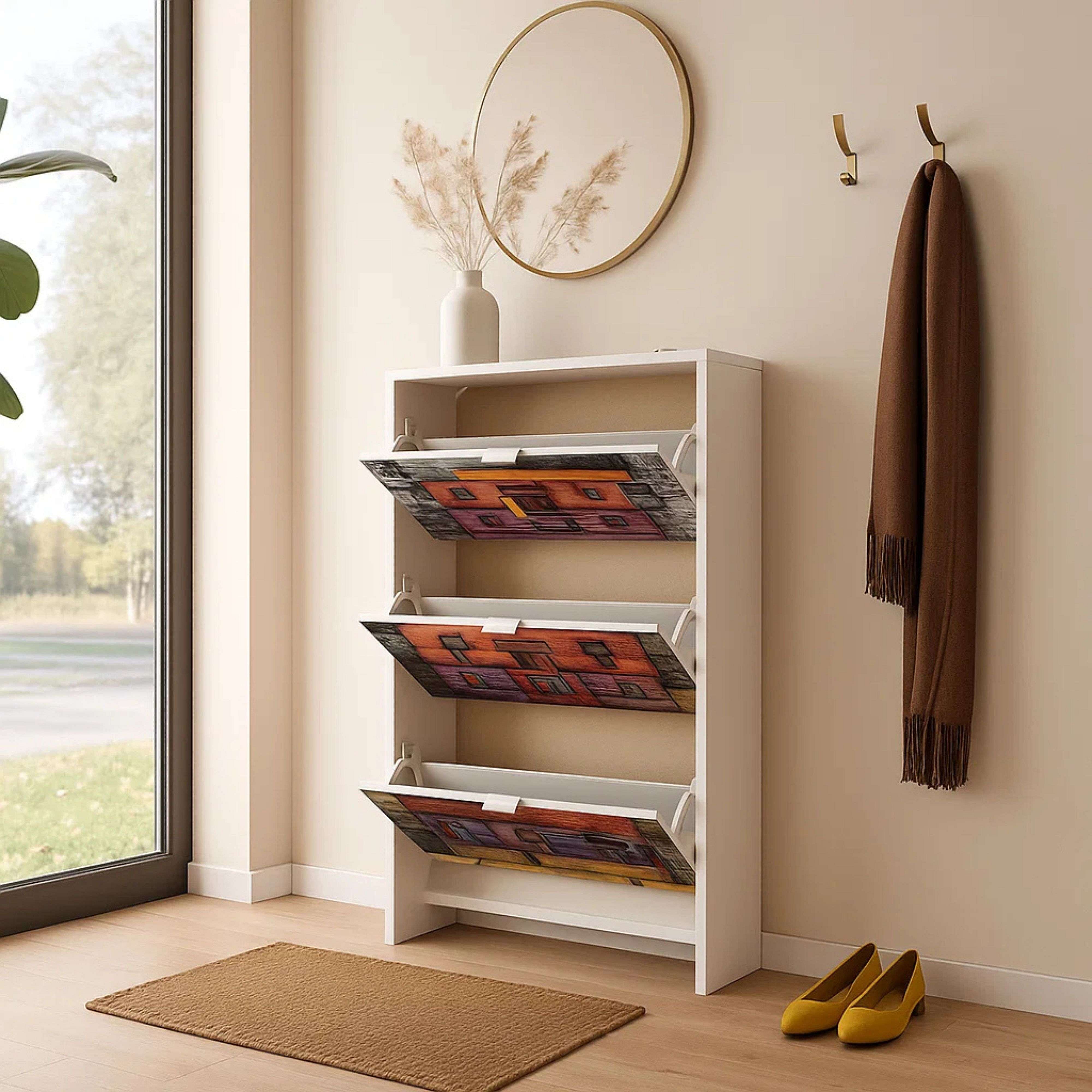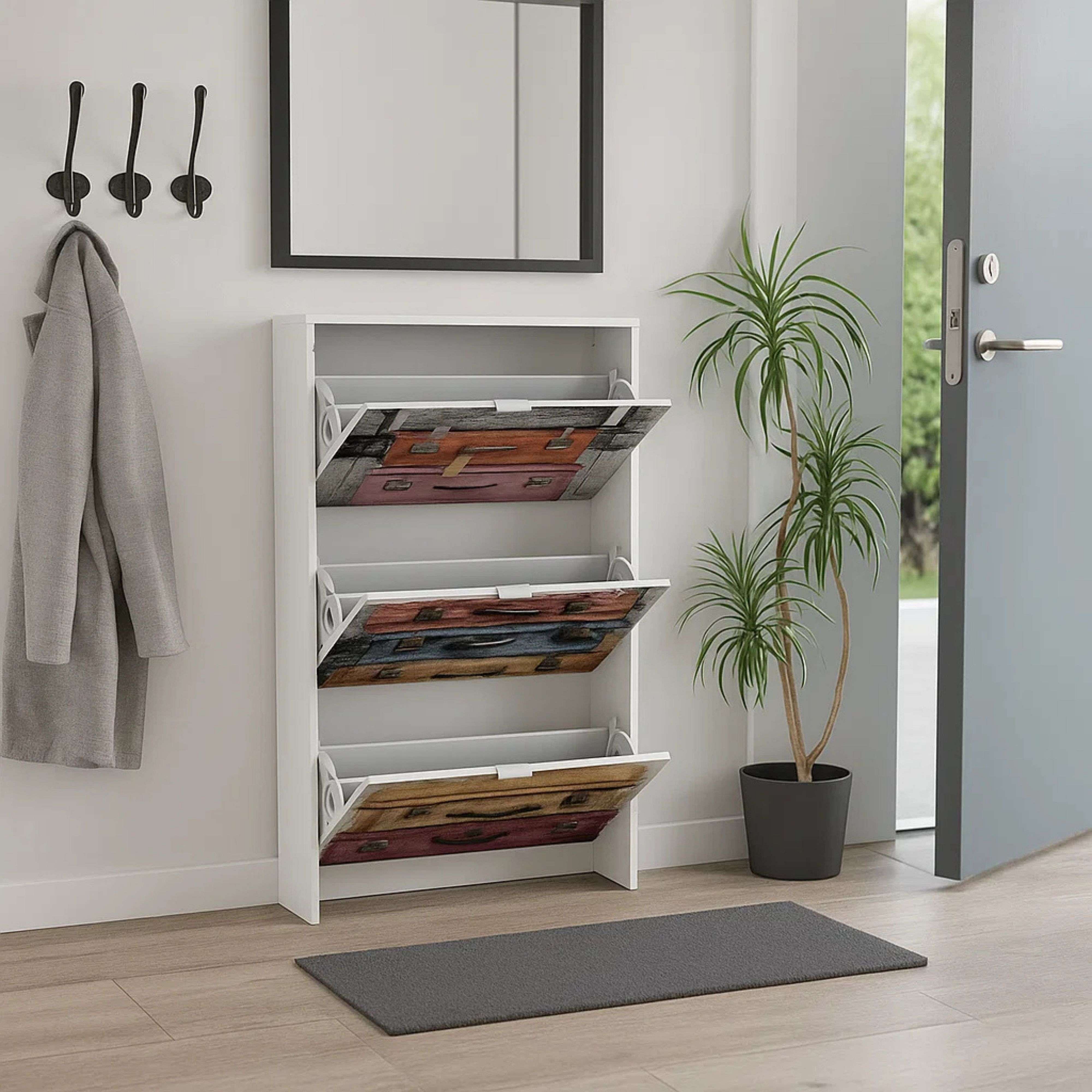 Zapatero Suitcase 3 Puertas c/Impresión Blanco Moderno 117x60x24 cm