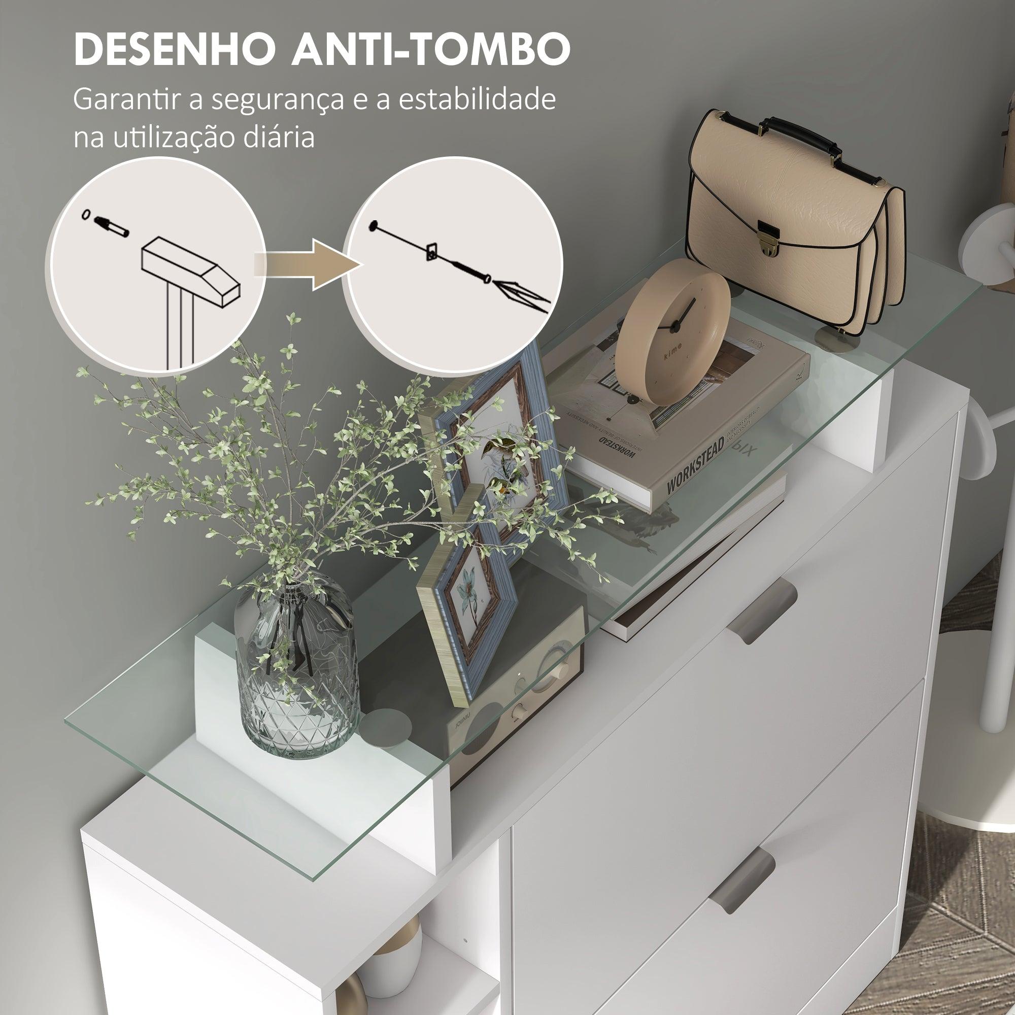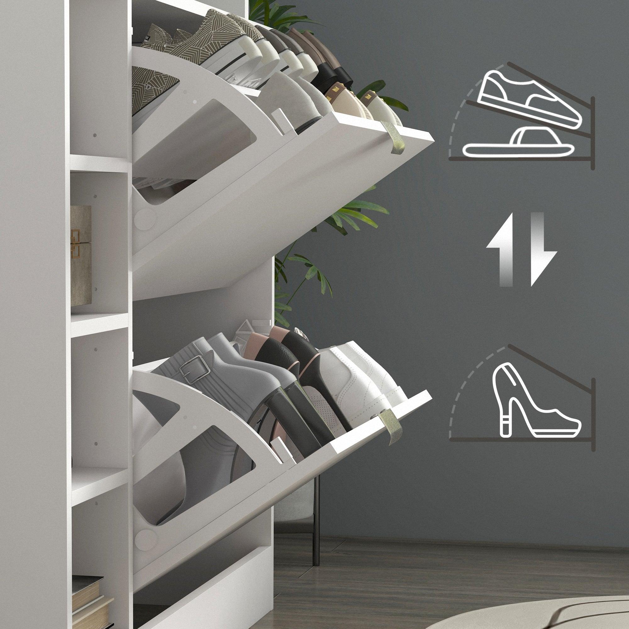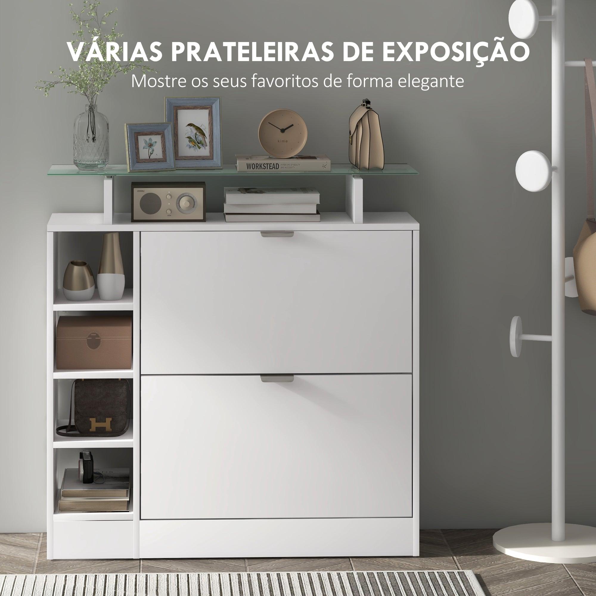 Este zapatero Toby, con diseño moderno y compacto, es perfecto para organizar tus zapatos en espacios reducidos. Cuenta con dos cajones abatibles que pueden almacenar hasta 12 pares de zapatos de hasta talla EU 45. Además, los estantes ajustables ofrecen flexibilidad para acomodar diferentes tipos de calzado, mientras que el estante superior de cristal y la estantería abierta proporcionan opciones adicionales de almacenamiento y exhibición. Este zapatero estrecho, con un acabado en melamina blanca, es ideal para entradas o habitaciones pequeñas, manteniendo el orden sin ocupar demasiado espacio. La estructura es resistente y fácil de limpiar, mientras que el dispositivo antivuelco asegura estabilidad y seguridad al fijarlo a la pared. Además, las almohadillas antideslizantes protegen el suelo de posibles daños. Con un diseño práctico y elegante, este zapatero no solo organiza tu hogar, sino que también agrega un toque moderno a tu decoración.