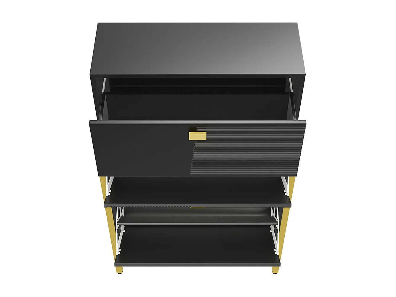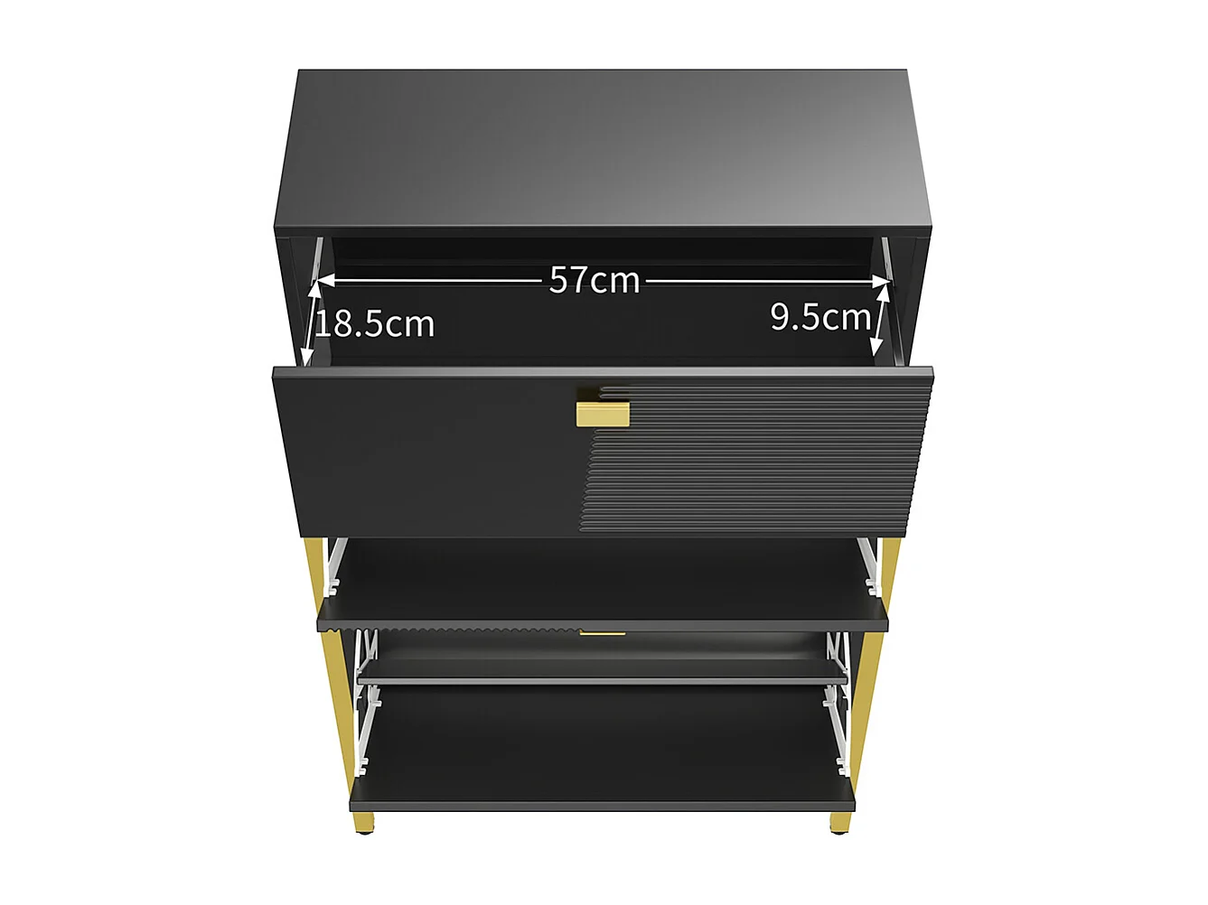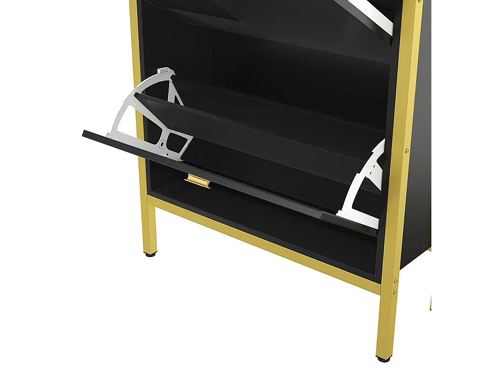 Zapatero, Zapatero con cajones, Zapatero doble con tiradores y patas dorados, 65x25x120,5 cm, Negro