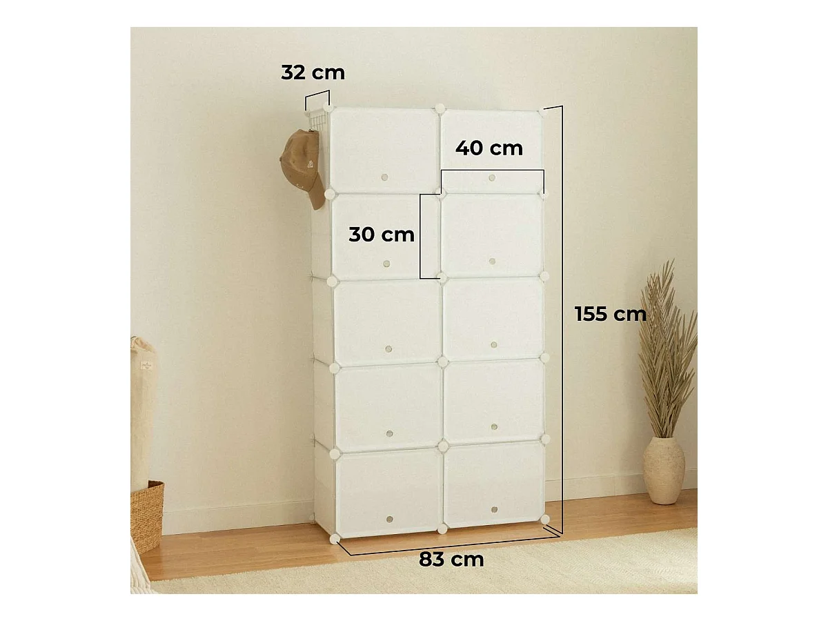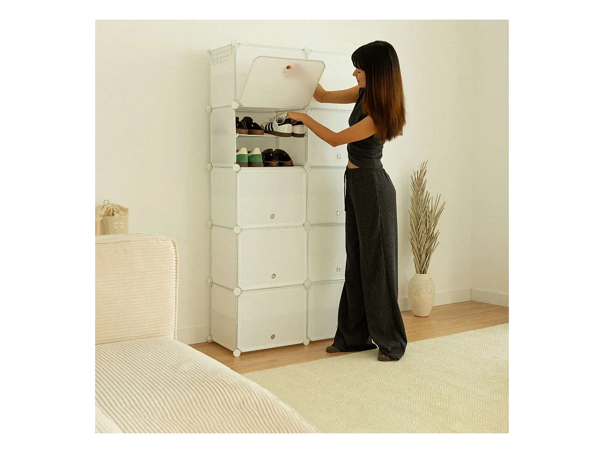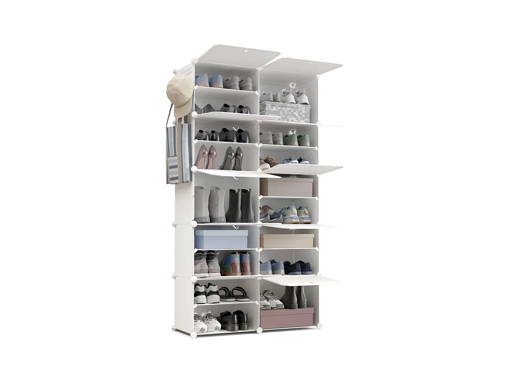 Zapatero con 8 estantes encajables, almacenamiento rectangular