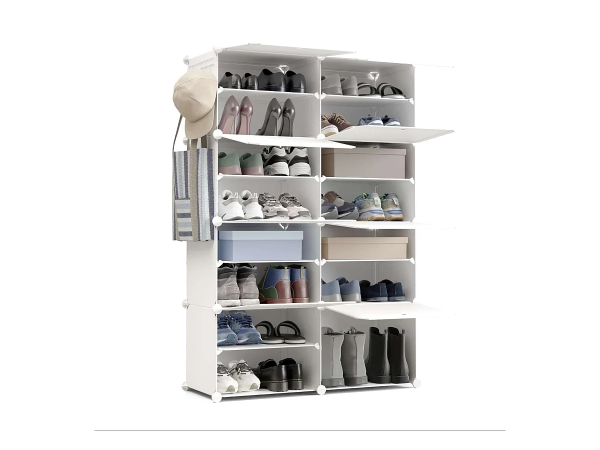Zapatero con 8 estantes encajables, almacenamiento rectangular