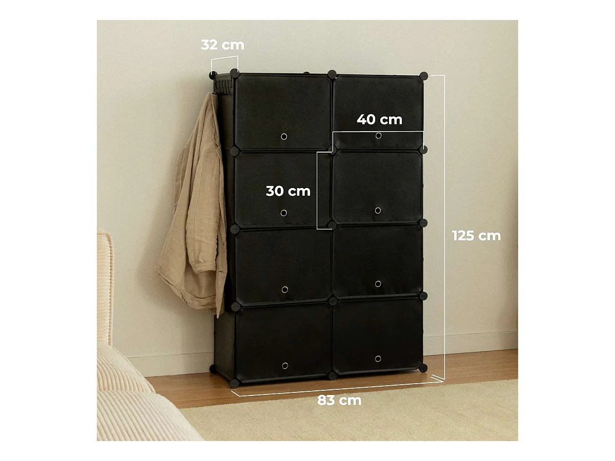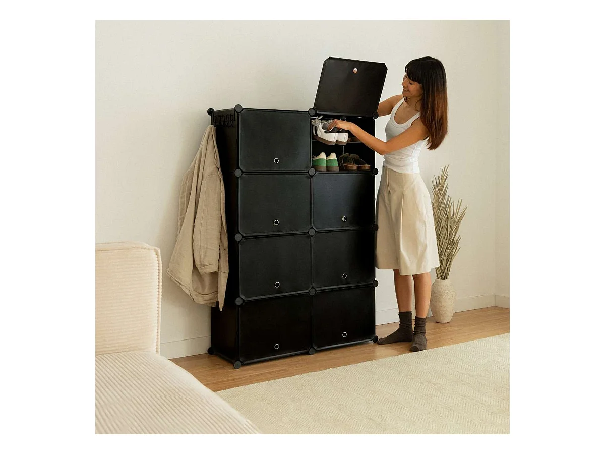 6 cubos de almacenamiento con puertas de polipropileno negro