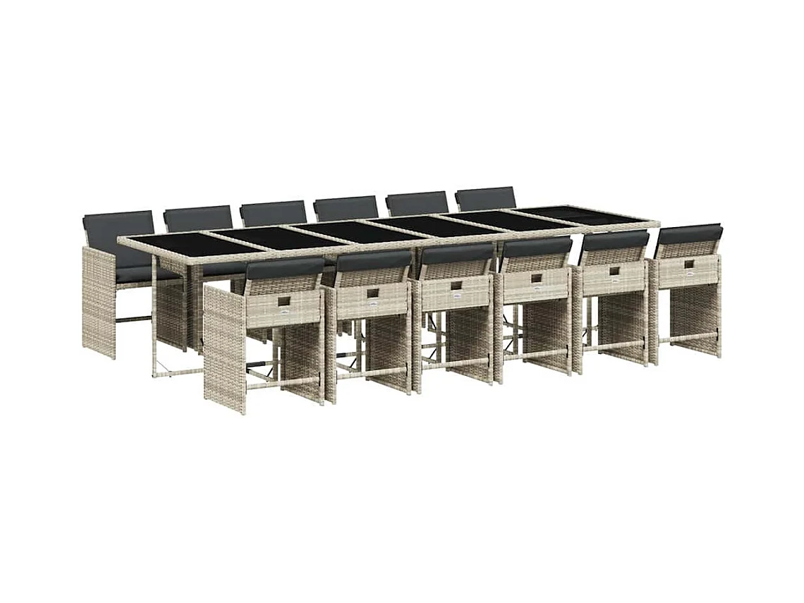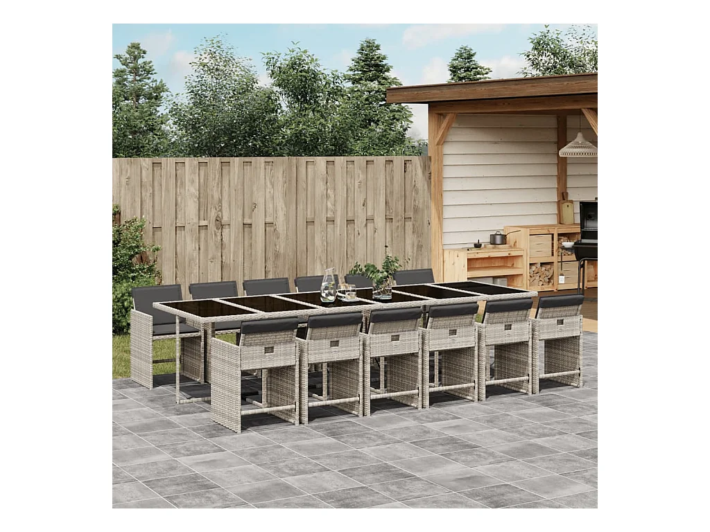 Zele Set comedor jardín y cojines 13 pzas ratán sintético gris claro