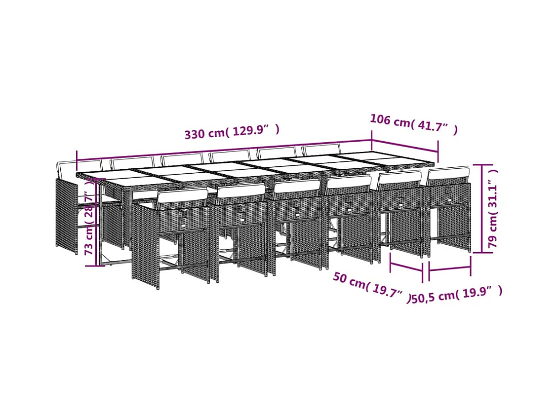 Ilo Set comedor jardín y cojines 13 pzas ratán sintético gris claro