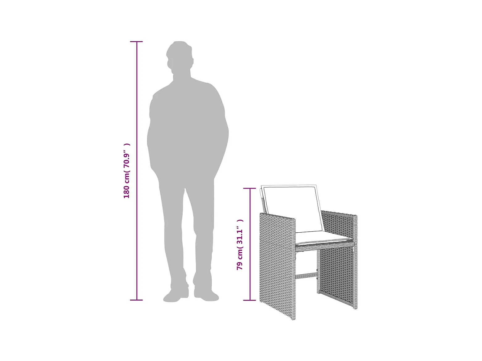Zenn Set comedor de jardín 17 pzas y cojines ratán sintético gris