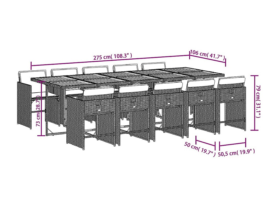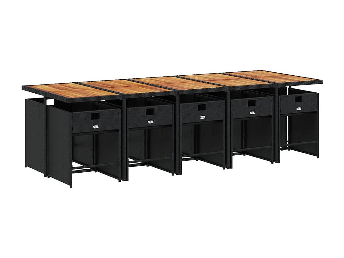 Zele Set de comedor jardín 11 pzas con cojines ratán sintético negro
