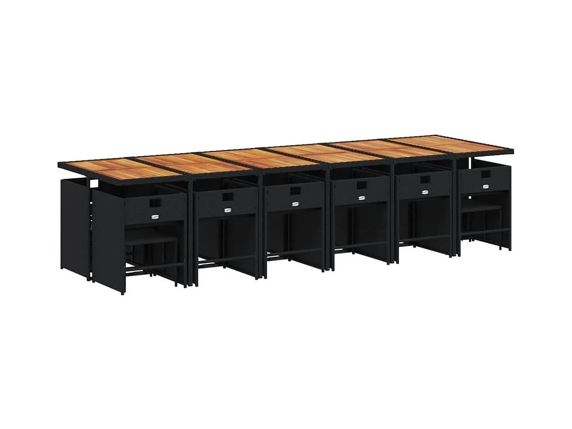 An Daingean Set comedor de jardín con cojines 13 pzas ratán sintético negro