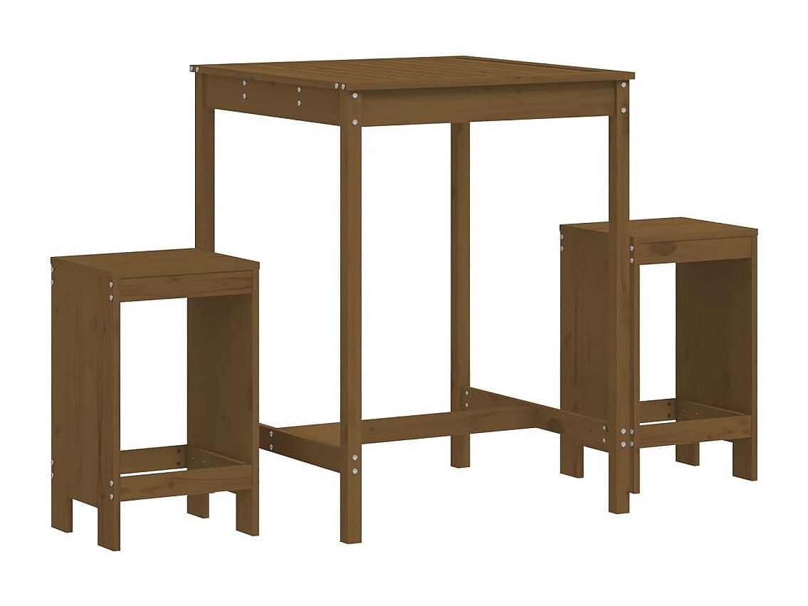 Zeynel Mesa y taburetes altos de jardín 3 pzas madera pino marrón miel