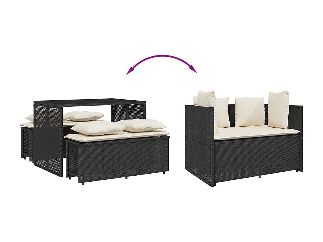 Marius Juego comedor jardín 4 piezas con cojines ratán sintético negro