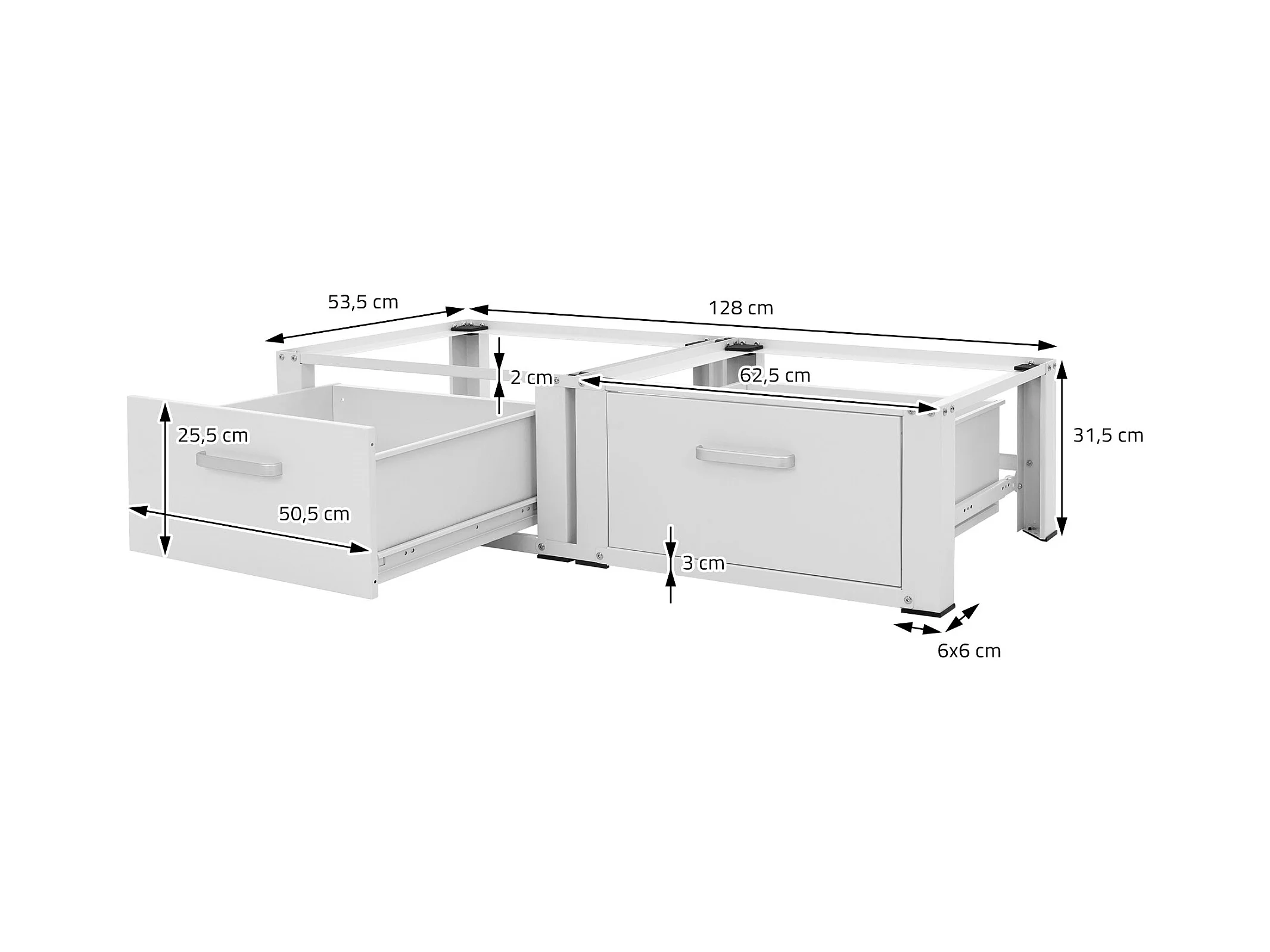 Soporte de elevación para lavadora o secadora con cajón blanco 54 x 63 x 31 cm