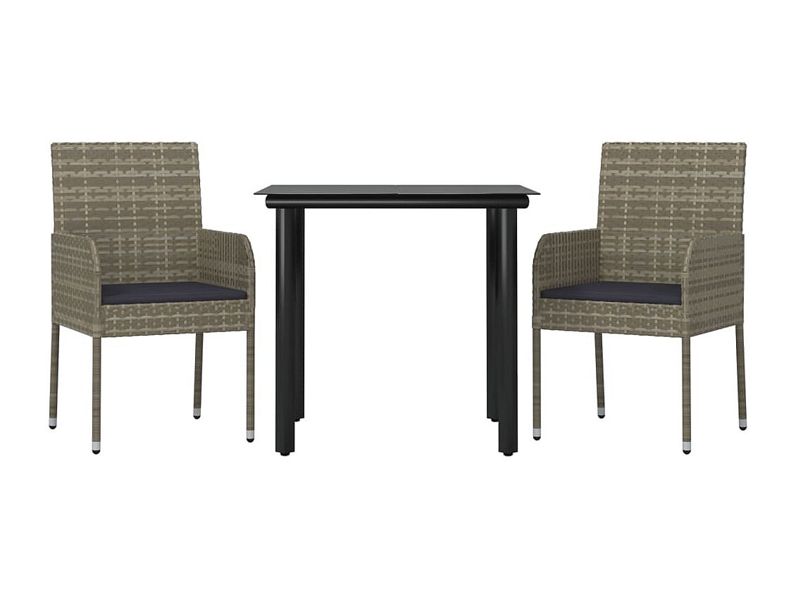 Zyldr Set comedor jardín 3 pzas y cojines ratán sintético negro gris